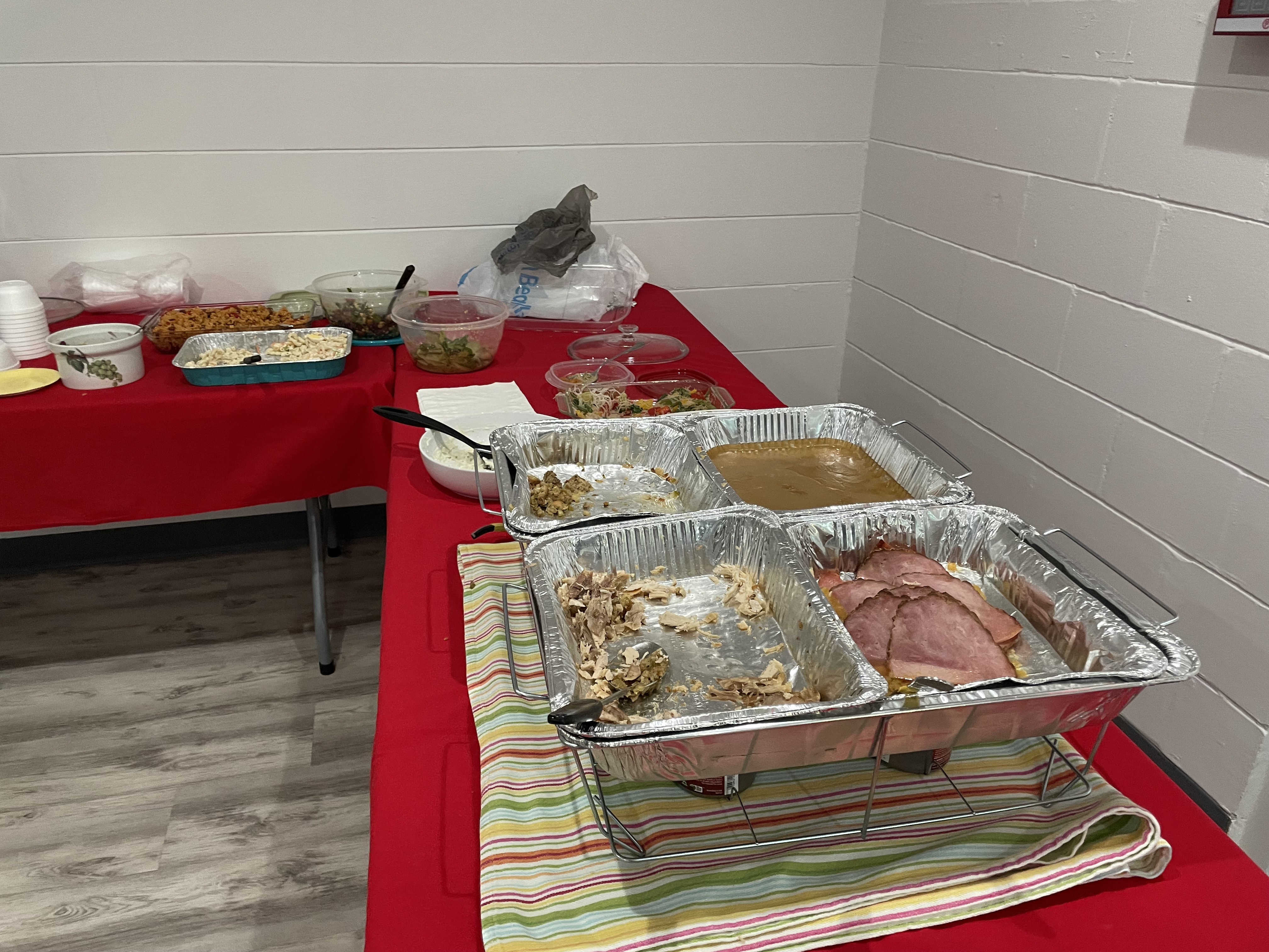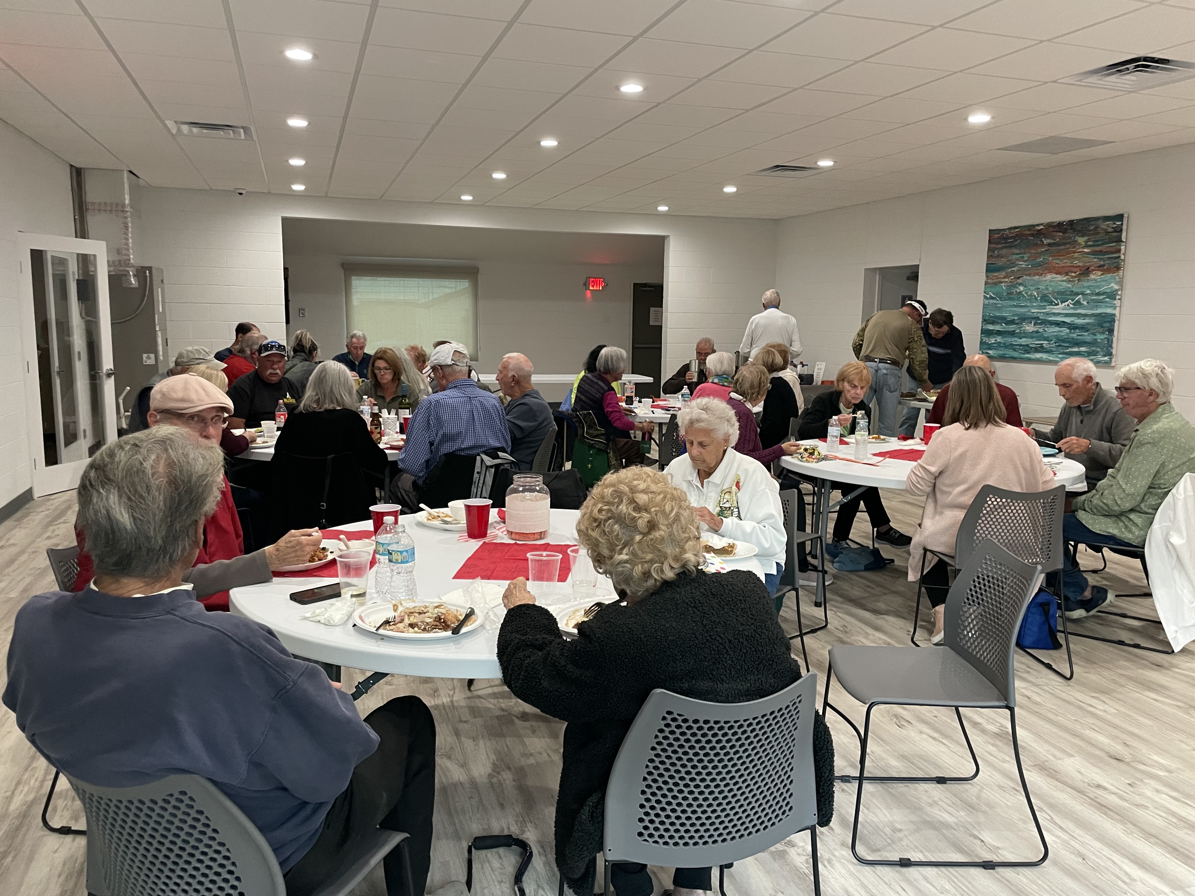 So tonight was our Welcome Back Snowbirds Pot Luck Dinner. Jan and Bill Sweet took on the massive job of organizing this dinner. Zak Wonson and Victor Stango helped set up the tables and chairs. Unfortunately Arlene was sick so Jan took charge of cooking the turkey and ham as well.