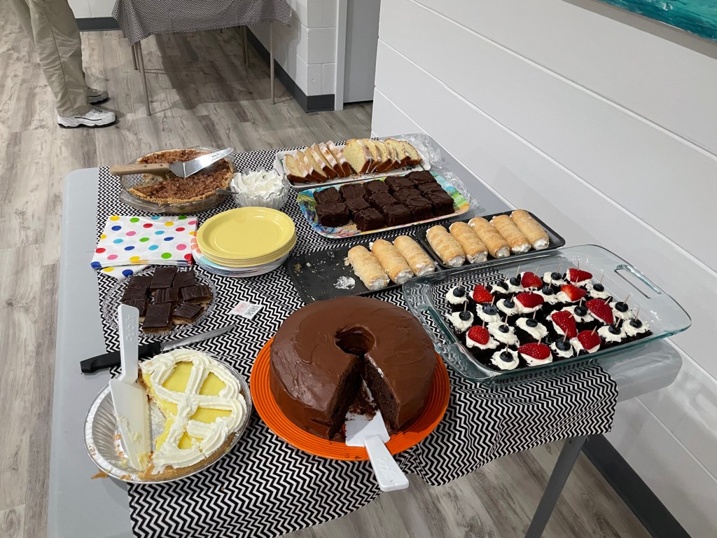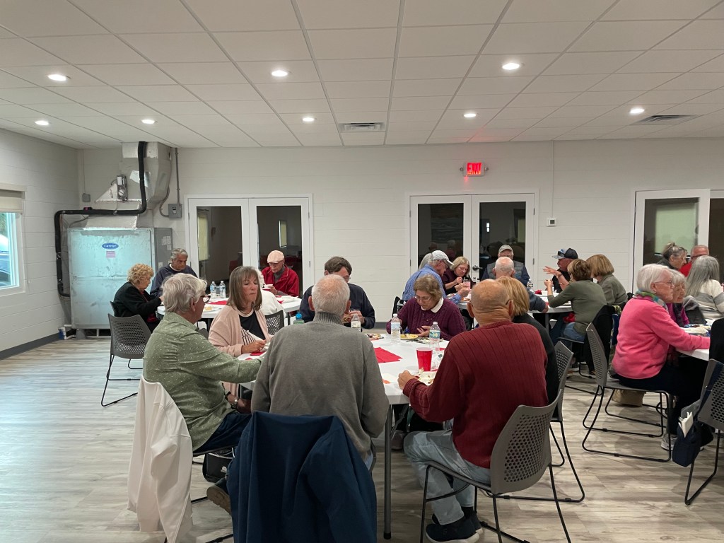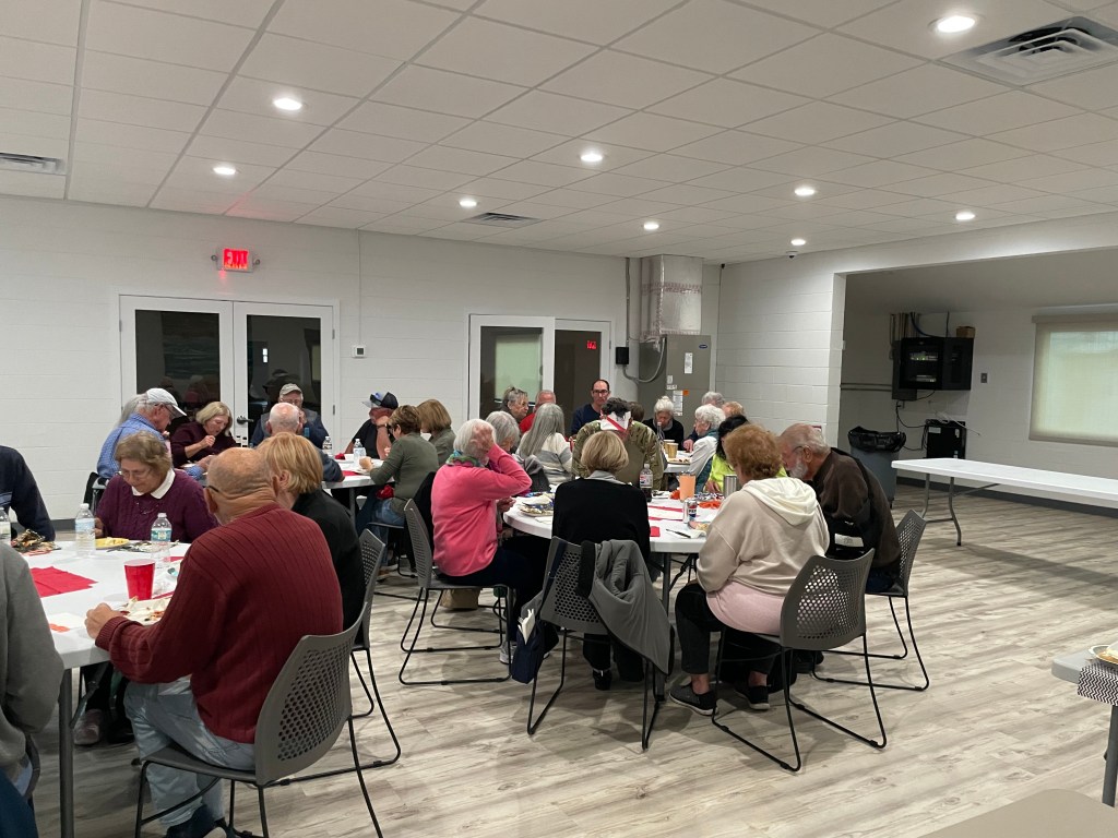 Stan Williamson welcomed everyone and Tom Grubb lead us in a prayer. We had 38 people come for the fun and $31.50 was the prize for the 50/50. The food, deserts and company were great. We finished up around 6:30, just in time for our Tuesday night regular shuffle.