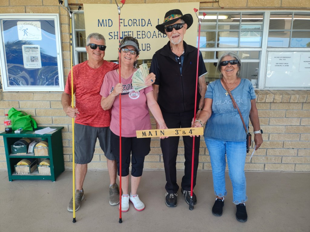 Jan Sweets did all the arrangements for our Fun Day. Allan Best and Bill Sweets did hot dogs. Jan made Macaroni salad and red velvet cookies. Joan made brownies. Greg( don’t know his last name) made meatballs. Chuck and Cindy Stage helped with set up. Also Joan Sanford helped so much in every stage of this day. Scott and Judy Menard also helped with set up along with Victor Stango. Joan Best did 50/50. Barb Fortini did registration and tallying score sheets for money payouts along with Arlene.