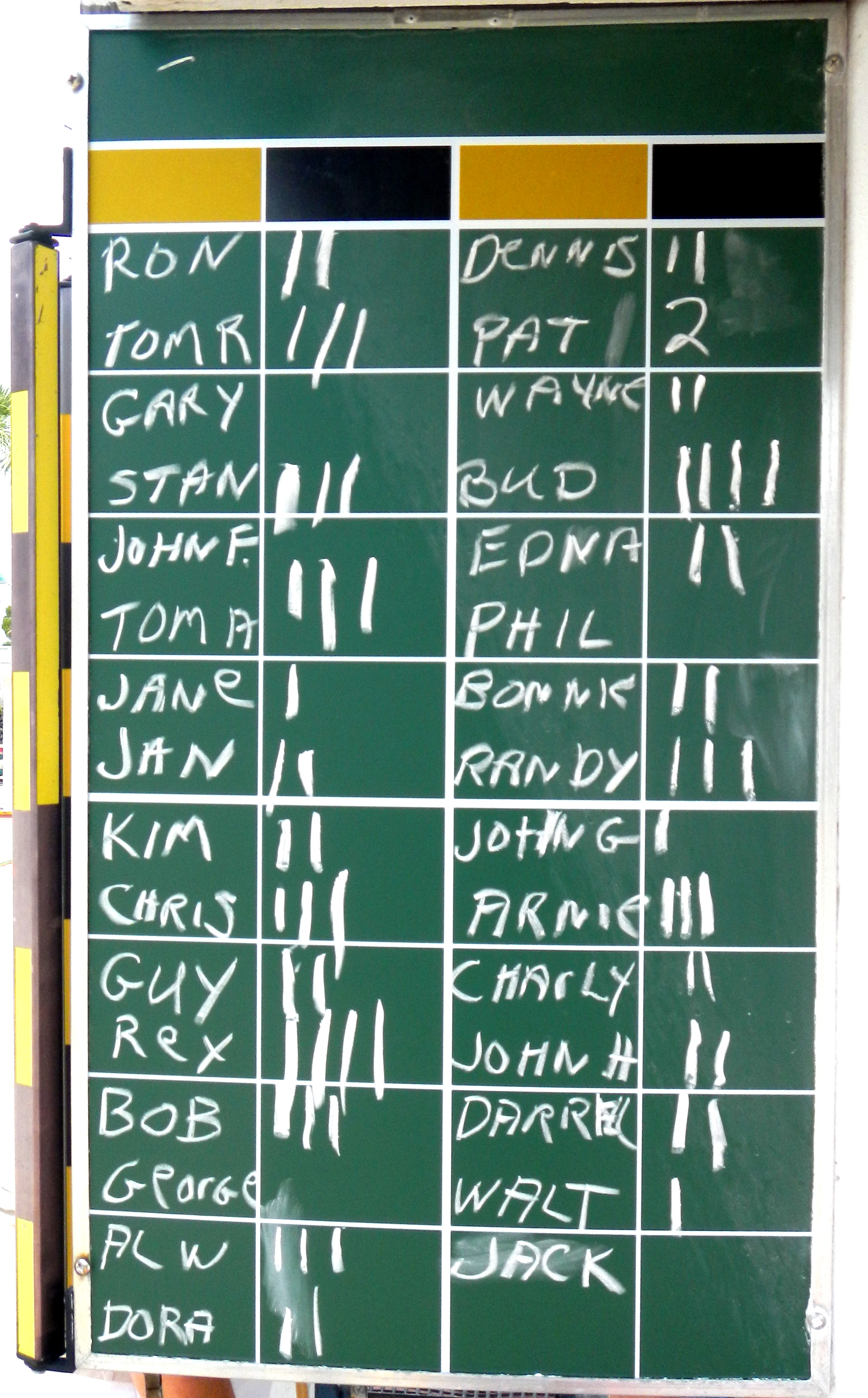 31 Shuffleboard players participated in the Thursday Morning Four-Play. The weather was cooler than expected and a bit breezy. Many of the players had to go back to their cars to retrieve jackets and sweaters. As usual, we had a very good time meeting up with our friends from other local towns.