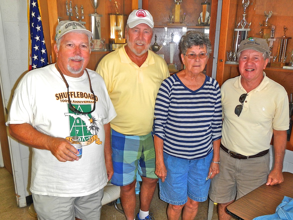 John Holder gave the prayer and Allen Best lead us in the pledge of allegiance. The Mayor, Jim Hathaway thanked us all for coming and received a brief lesson from Felix Piscitelli on how to “shuffle”. Sixteen (16) Pros and Twenty (24) Amateurs drew random disks for court and partner assignments before every contest. We played three games before lunch and then three more games after lunch.   The winners were as follows:  Pros First Place – Charlie Jones;  Second Place – Edna Triplett; Third Place – Wendell Henderly and Fourth Place – Tom Andrick.  Amateur First Place – Mary McConnell; Second Place – John Fortini; Third Place – Grant Barrett and Fourth Place – Allen Best. Congratulations!