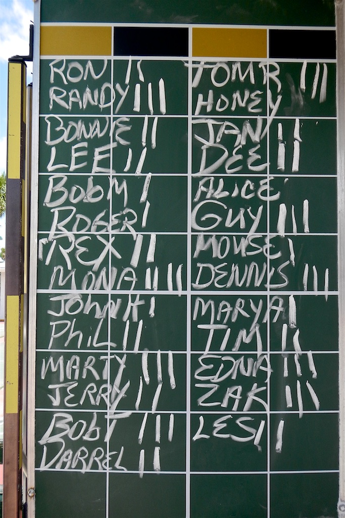 Today’s Thursday Morning Four-Play matches attracted Twenty-Seven (27) steadfast shufflers who showed up for some sweltering summertime shuffling competition. This week Mona Carkner was the only shuffler to win all four of her matches. Congratulations! Most participants are looking forward on returning to shuffle on Flagler Avenue next week. See you then.