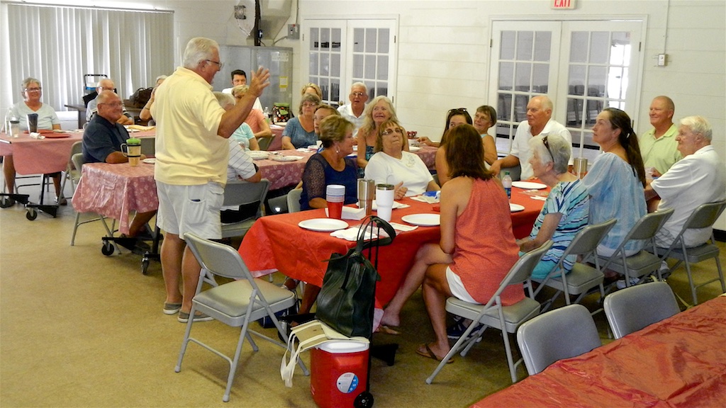 The 50/50 drawing winner, handled by Joan Best, was Gerry Bousquet (a recurrent winner). Allen Best had our new members and guests introduce themselves. He also encouraged us to participate in the upcoming 9am Saturday morning (August, 27th) meeting of “ideas” in preparation for our Club’s 80th Anniversary in 2017.