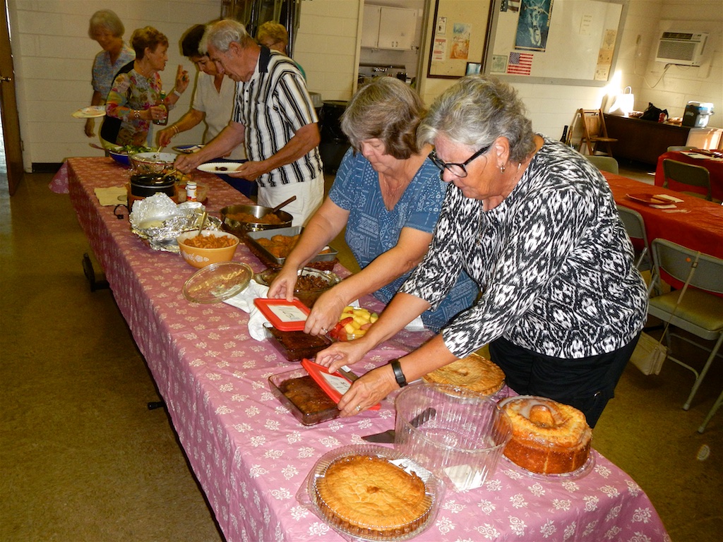 Thursday, Oct 14, our monthly Pot Luck Dinner had Sixteen(16) peckish CMS Club members show up to socialize and relish some fine edibles. Allen Best welcomed a new member, Jean Clark and another member to be, Georgie Ann. Joan Best held a 50/50 drawing and Mr. Lucky, Gerry Bousquet, won once again (CAN YOU BELIEVE IT!). Allen Best also announced the Northern District’s No Two Pros Tournament’s CMS Club participant finalists and then we had a prayer. Subsequently our Pot Luck dinner buffet, with some great salads, pastas, fried chicken and deserts, was open for self-service.