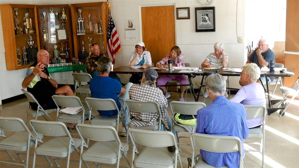 At 11:00am we began our General Board Meeting. Don Nephew arrived so we had Eight (8) board members and Eighteen (18) regular members. One of the biggest take-aways from this meeting was the motion to authorize the acquisition of New Discs from Wayne Lockwood’s generous gift to the club.