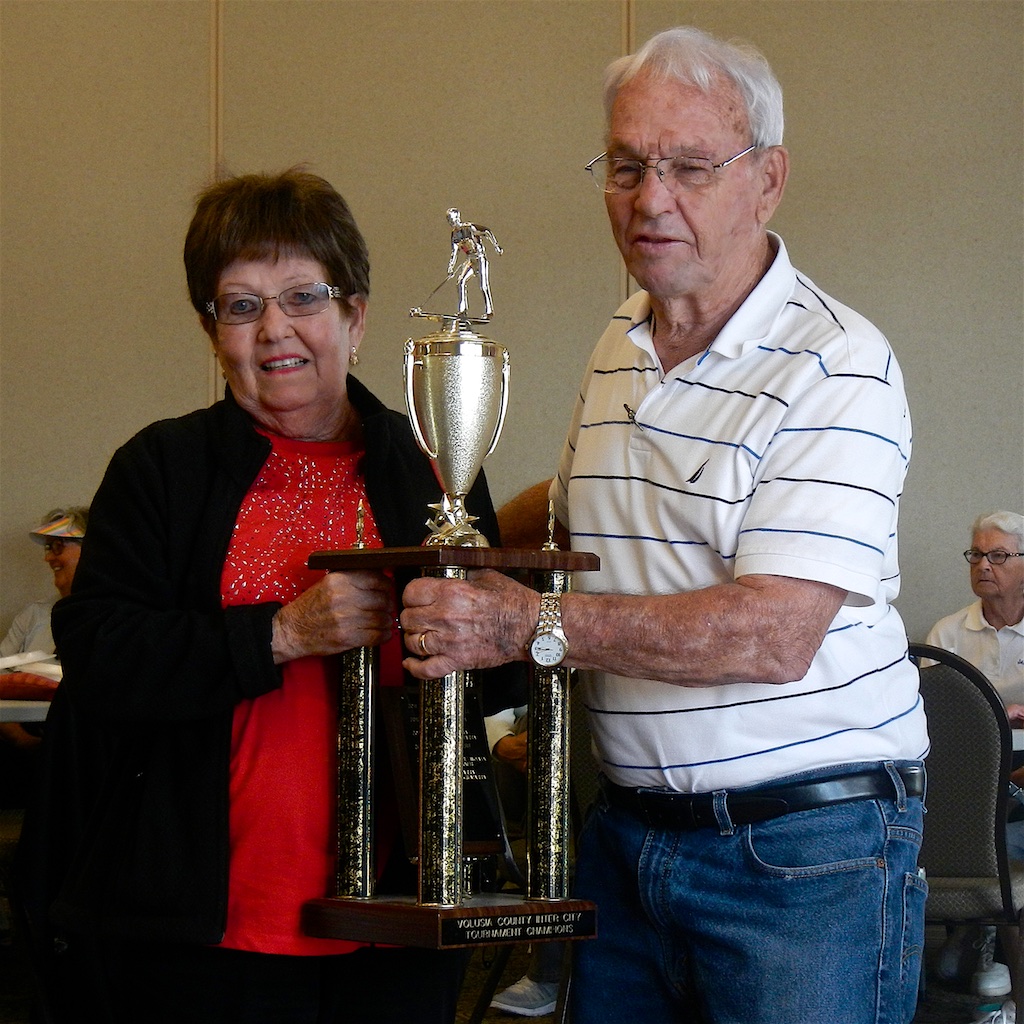 Monday, March 6th was the 2017 Inter City Finals Tournament held at Deland. All of the Teams from Deland, Orange City, Ormond Beach and New Smyrna Beach met at 8:30 am this morning for a final end of season tournament. The A and B Teams were chosen according to the percentages of games won or lost during the season from October to March. The Tournament was sponsored by the Orange City Shuffleboard Club. Richie Burrell Directed and tabulated the results of this very successful tournament.