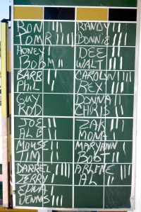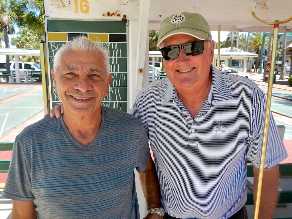 Once again Ron Raymond, Tom Rimmer and crew showed up early to prepare the courts for this morning’s Thursday Morning Four Play. We had Thirty (30) ebullient shufflers show up to have some more fun on our shuffleboard courts. Everyone played four matches. We had three players win all four of their matches: Carolyn Menosky, Tom Rimmer and Darrel Harman. Come join us next week for another exciting game of shuffleboard. Ciao!