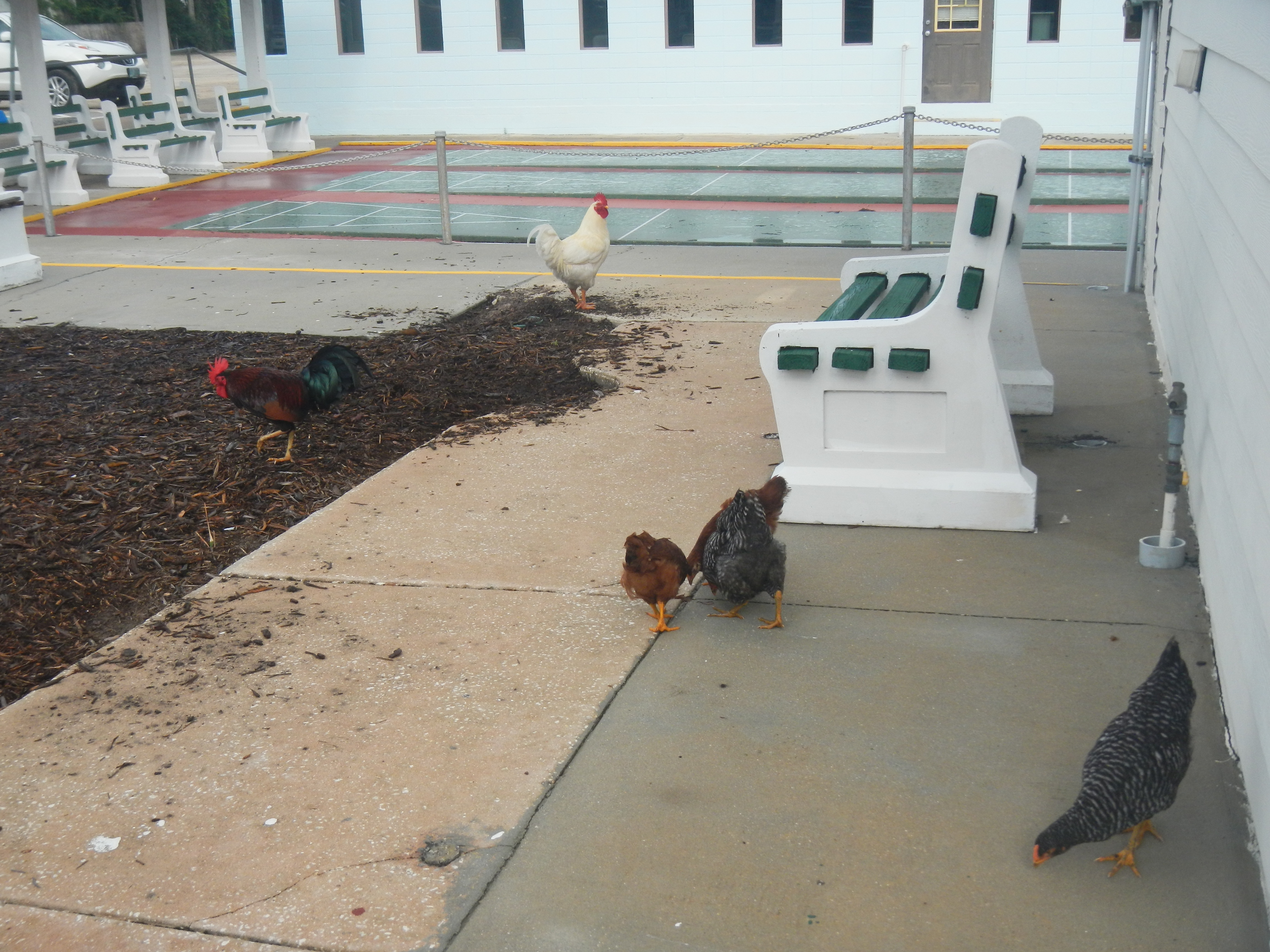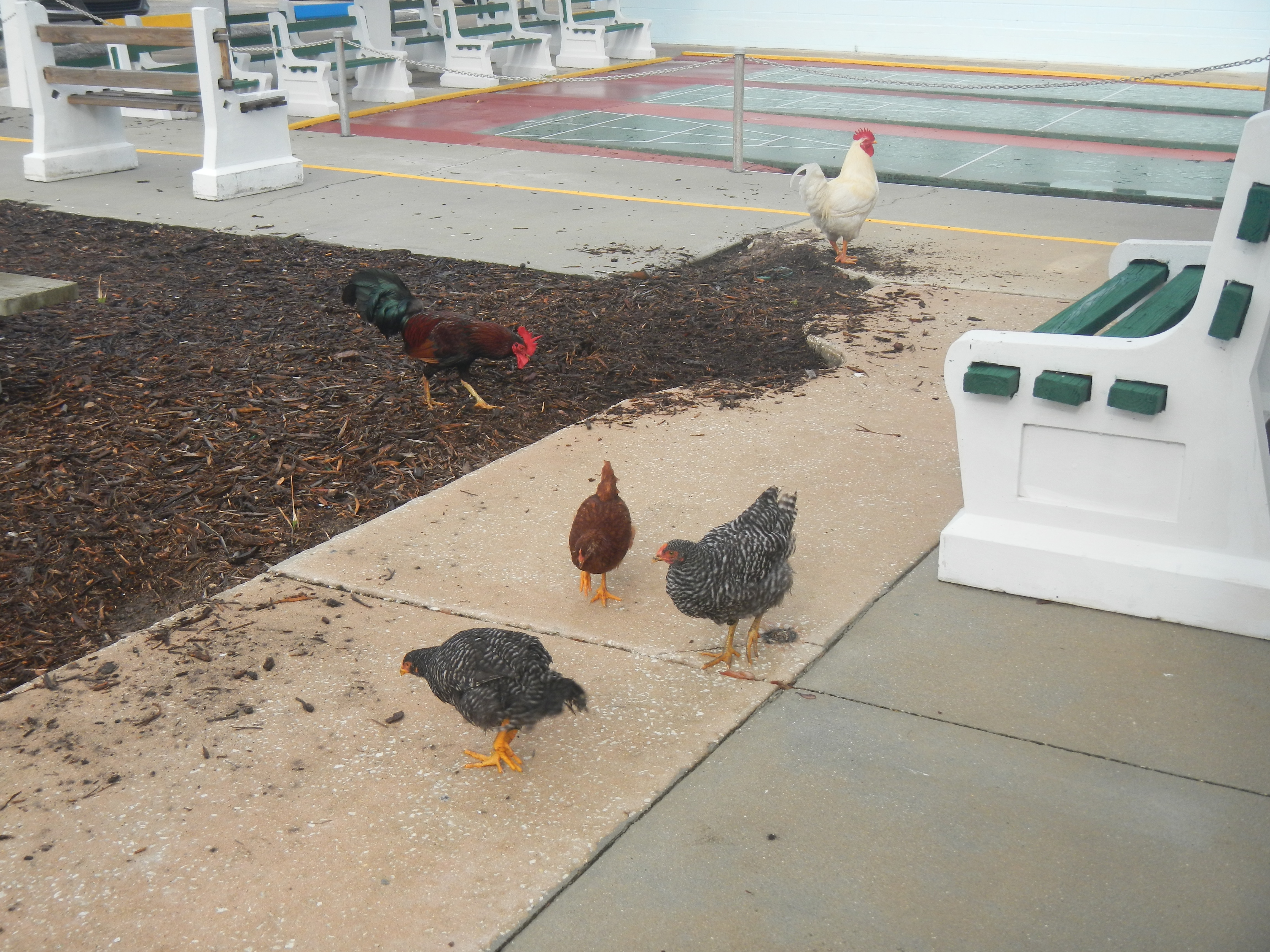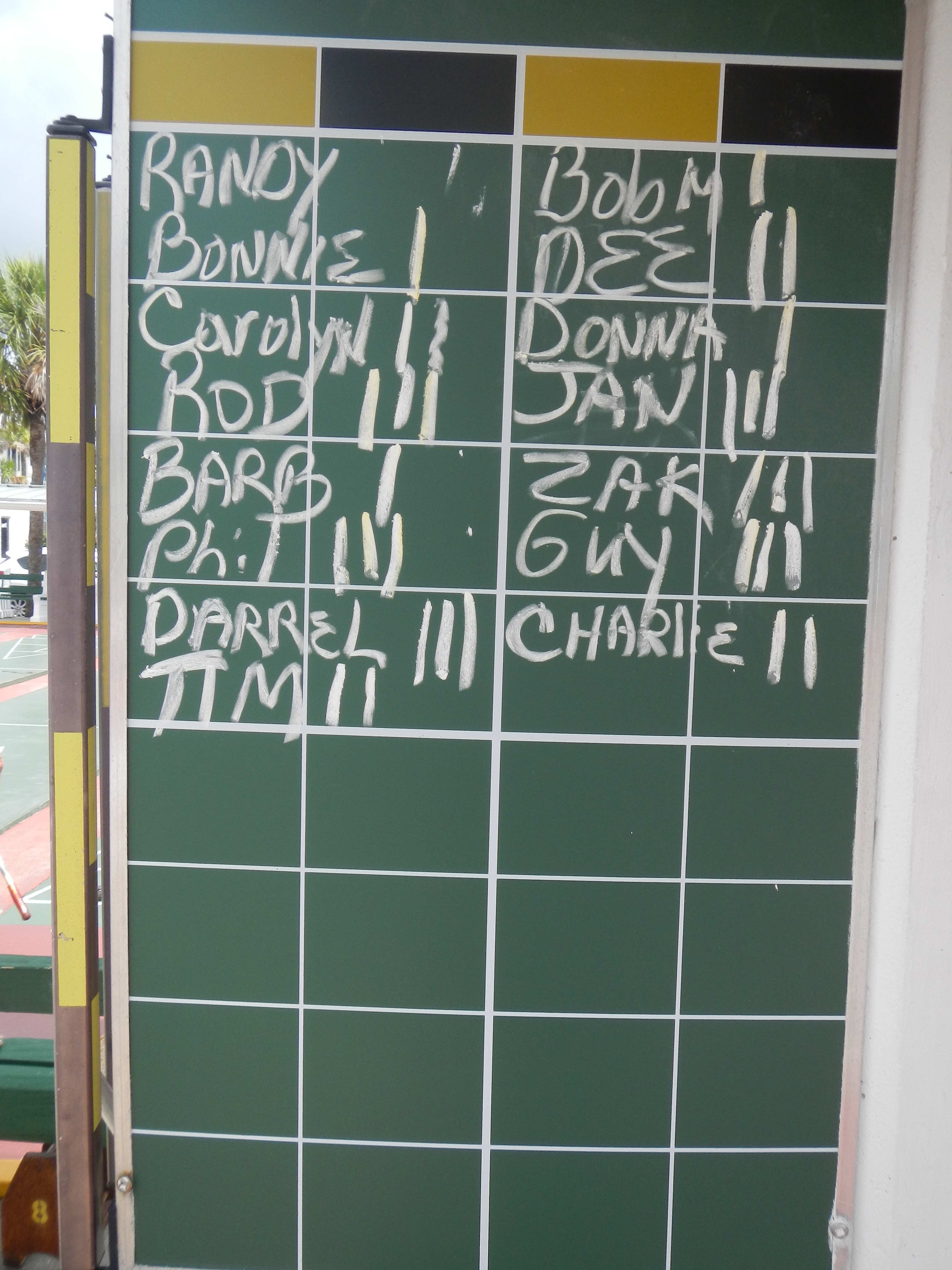 This morning started out very questionable after a night of rain. Ron Raymond came by to get us started. His crew cleaned up the courts and got them ready for play. The roosters were on the courts herding the four new hens while Twenty-Three (23) enthusiastic shufflers showed up, despite the threat of rain, to challenge each other for bragging rights. We recorded the winners of each game and once again, no one had won all four of their matches. Next week we will challenge each other again. See you then. Ciao!