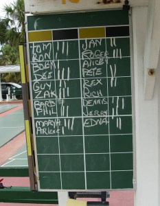 Today was a beautiful day for shuffling. Ron and his crew cleared the courts for play and nineteen (19) shufflers showed up to meet the challenge. Once again, no one was able to win all four of their matches. I guess we will have to wait until next week to see how many shufflers will be able to rise above the rest and win all four(4) of their matches. See you next week. Ciao!