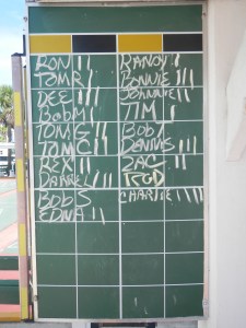 Ron Raymond and his crew arrived to clean and prepare the courts for the morning competition. Nineteen (19) enthusiastic players came to see who could win all four of their games. We had one court that was played as a Round-Robin and four team courts. At the end of play we had one player, Charlie Jones, who won all four of his games. Congratulations Charlie! Hope to see all of you back next Thursday morning for this fun competition.
