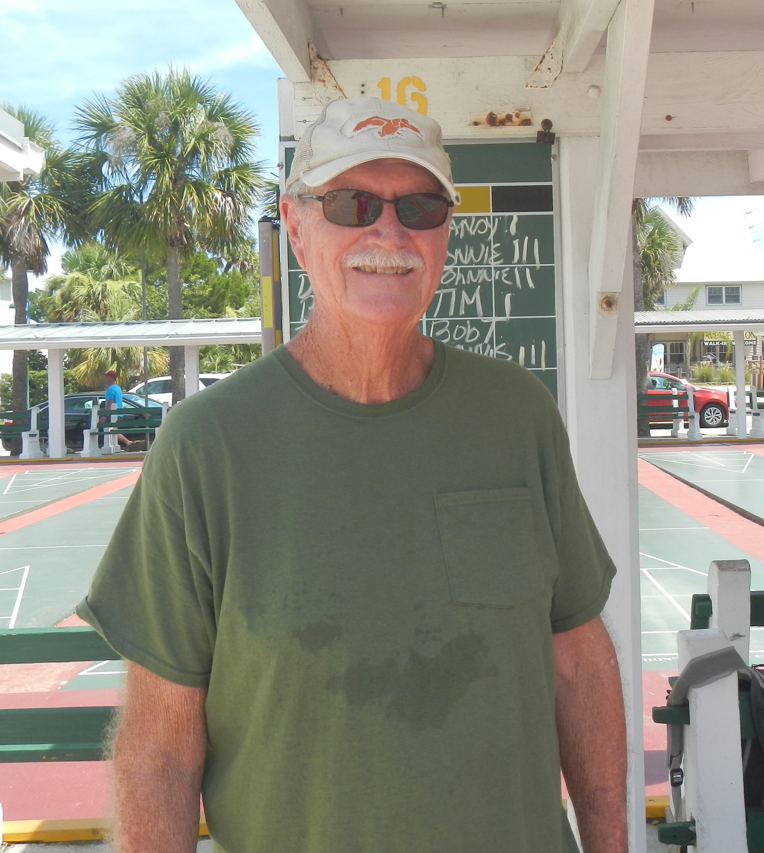 Ron Raymond and his crew arrived to clean and prepare the courts for the morning competition. Nineteen (19) enthusiastic players came to see who could win all four of their games. We had one court that was played as a Round-Robin and four team courts. At the end of play we had one player, Charlie Jones, who won all four of his games. Congratulations Charlie! Hope to see all of you back next Thursday morning for this fun competition.