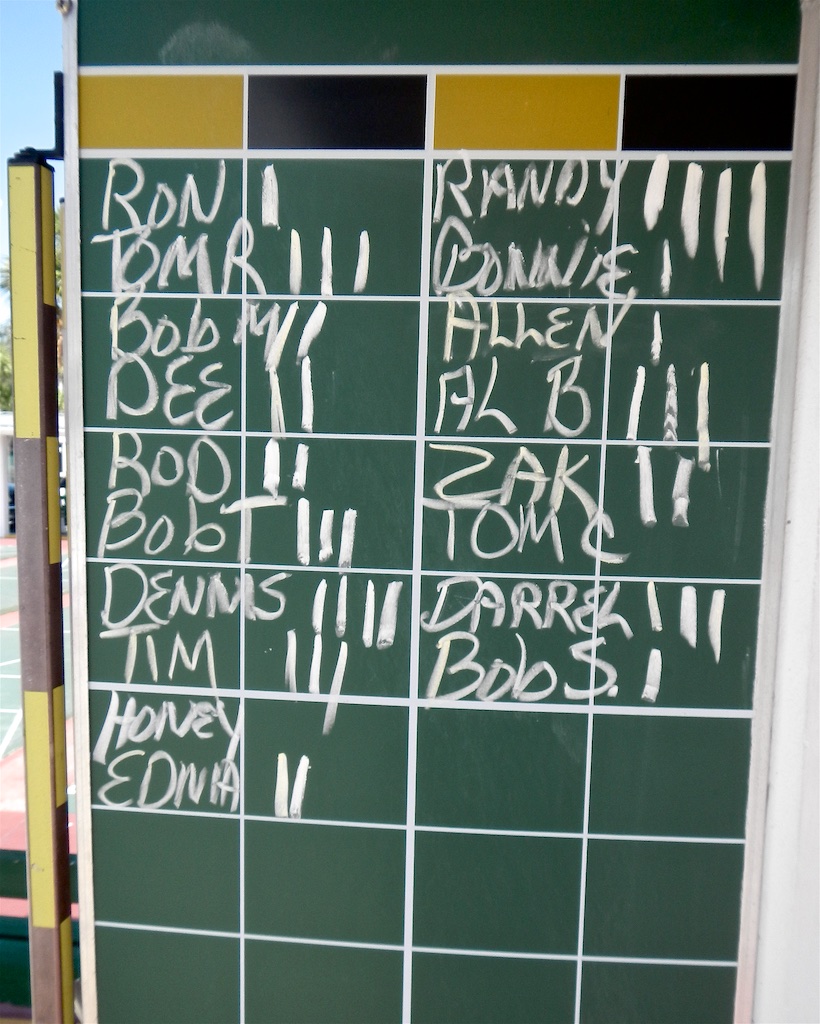 Ron Raymond and his crew cleaned up the courts for play in this last Thursday in August. Only one more month left for playing Thursday Morning Fore-Play. Eighteen (18) excited players arrived this morning for the challenge. At morning’s end, only two players, Dennis Buelk and Randy Radke, had won all four of their matches. Congratulations! Hope to see y’all next week to face the next challenge. Ciao!