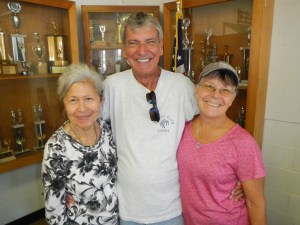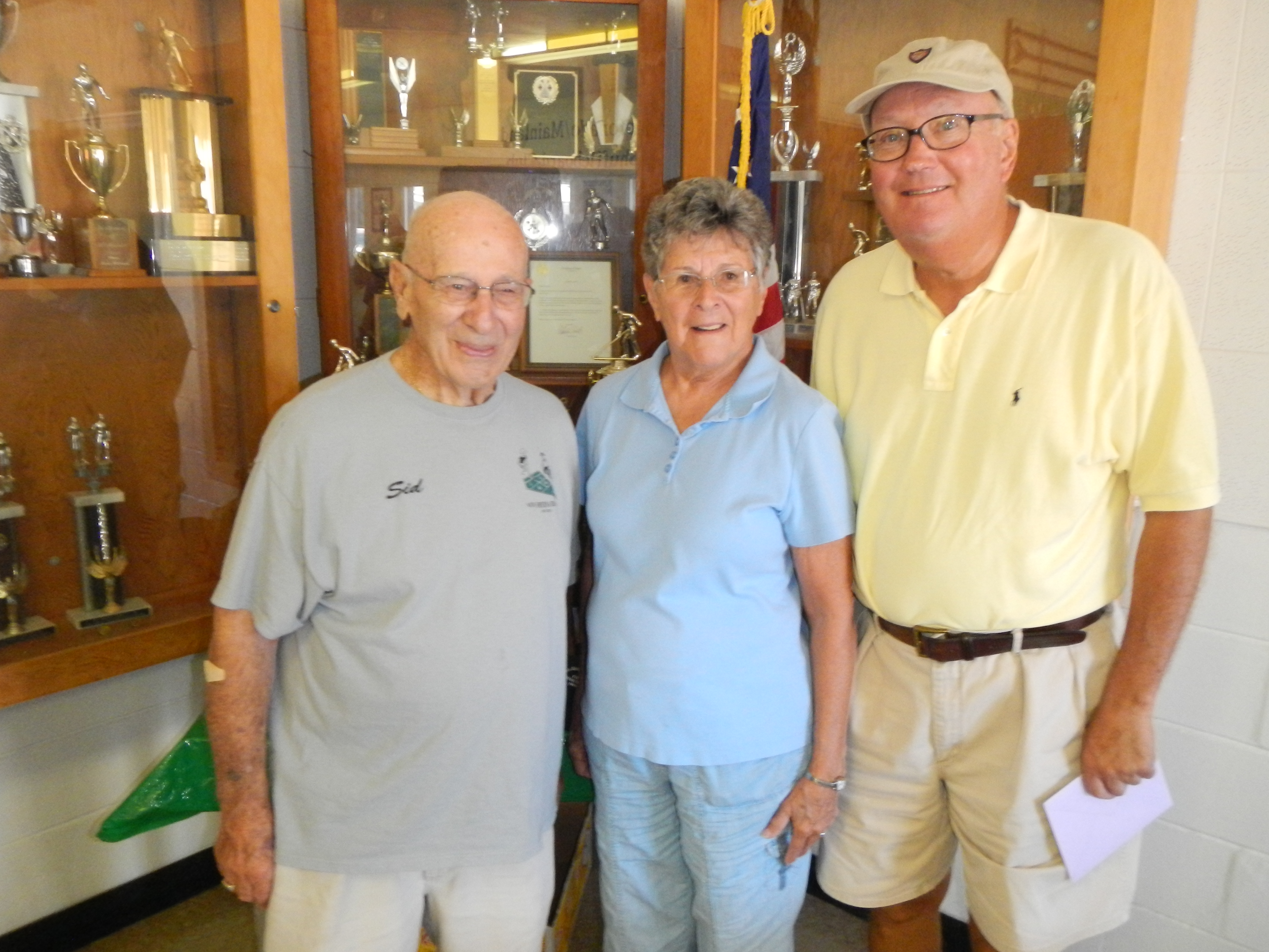 Rich and his outstanding set up crew started getting ready for Fun Day at around 9 am. Candy, along with the kitchen crew, set up the kitchen for our post play luncheon. The shufflers started arriving around 9:15 to register and pay their entry fee to Barb Fortini. Joan collected for the 50/50 which Mary McConnell won. Allen assigned and oriented the team leaders. We had eight teams with three and four members. After everyone had completed playing on all twenty courts, we met back in the Club House to have Hot Dogs and tally the scores.