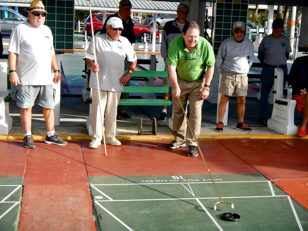 Allen Best welcomed the NSB Mayor, Jim Hathaway, at 8:30 am to thank him and the city for scheduling the refinishing of our courts. Jim played a ceremonial game with Felix Piscitelli. He thanked us for inviting him to the NSB historic courts and told us to have a wonderful Mayor’s/ Memorial Tournament.