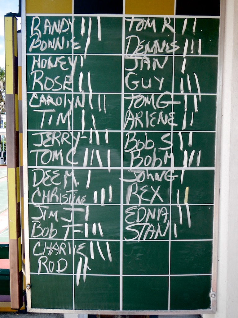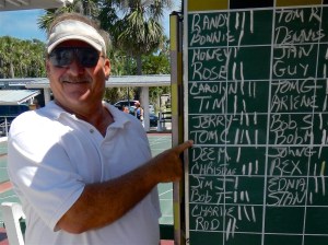 The usual clean up crew showed up to prep the courts for the Thursday Morning Four-Play challenge. Twenty-Six (26) shufflers showed up for the friendly competition. We each played four games, then recorded the winners at the end of each match. At the end of play, Tom Carbonell became the only shuffler to win all four matches. Congratulations Tom! Hope to see you all back again next week for some more friendly shuffling competition. Ciao!