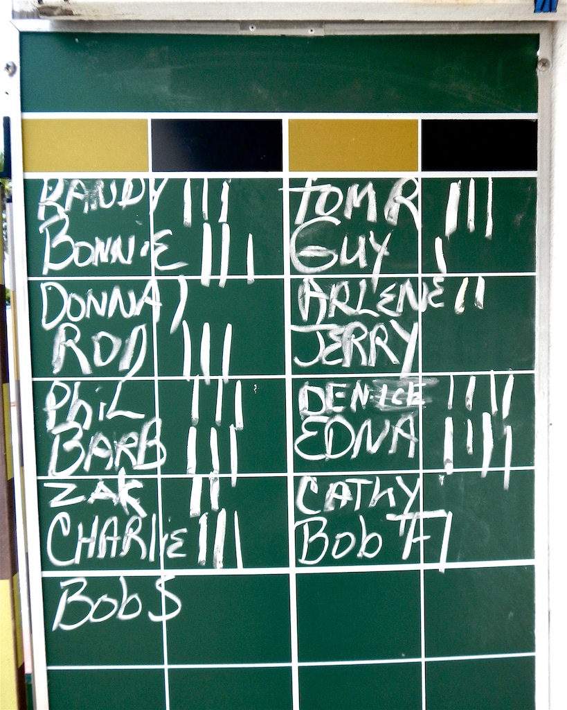 Hope everyone had a marvelous Independence Day. The usual clean up crew showed up to prepare the courts for the morning challenge. Seventeen (17) ardent shufflers showed up to challenge each other in our Thursday Morning Four-Play. We each played four separate matches, recording our wins after each match. Congratulations go out to Edna Triplett and Dennis Buelk for winning All Four of their matches. Come visit us next week to meet this challenge. Ciao!