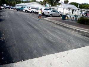 Friday afternoon the city of New Smyrna Beach paved the parking lot adjacent to the CMS courts with asphalt. Potholes have now been eliminated. Looks Good.