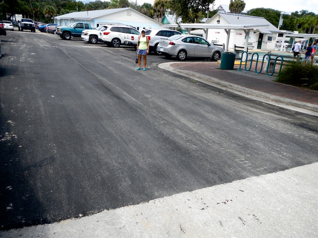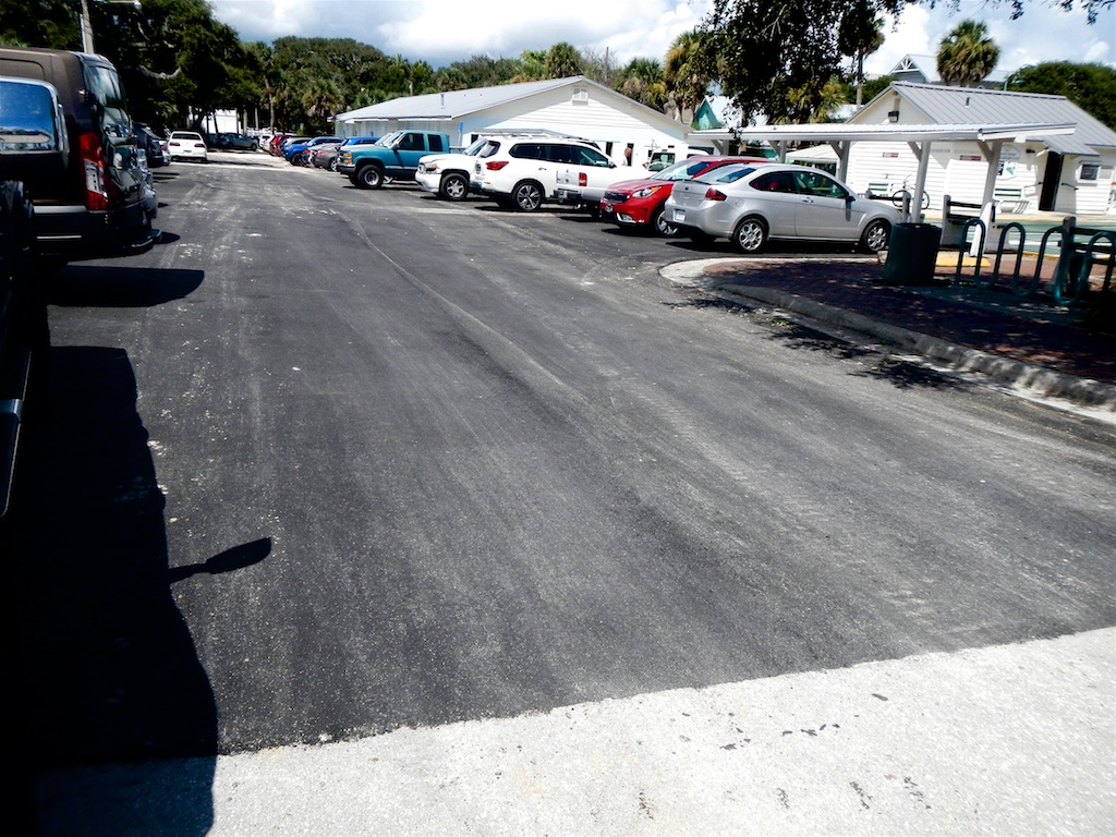 Friday afternoon the city of New Smyrna Beach paved the parking lot adjacent to the CMS courts with asphalt. Potholes have now been eliminated. Looks Good.