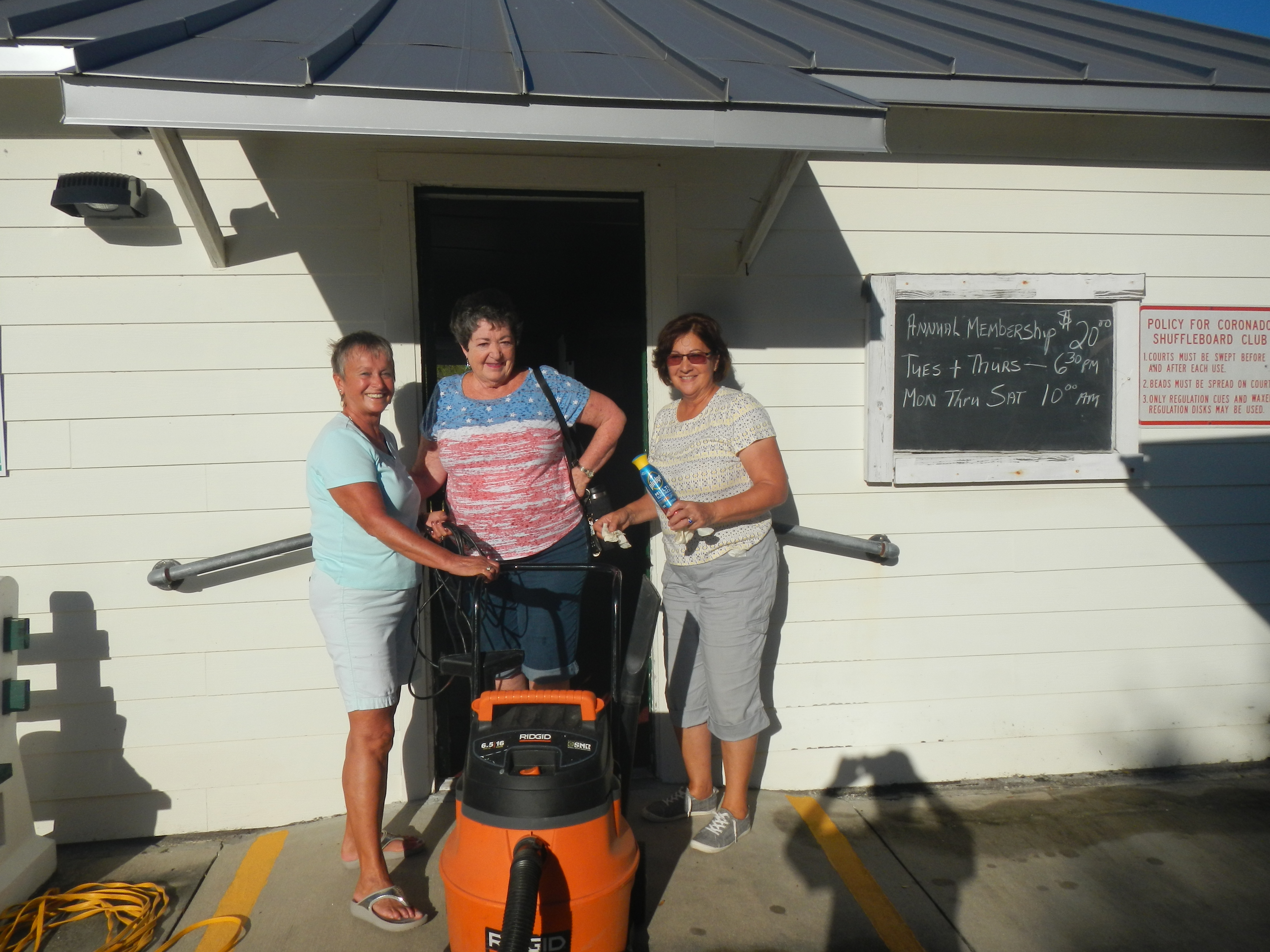 Nineteen (19) Volunteers showed up to wash, wax and clean the courts as well as wash and clean all the chalk boards and sponges. A BIG THANK YOU GOES OUT TO: Rich and Candy Kordeleski, Mary McConnell, Tom Carbonell, Allen Best, John Fortini, Rex Galusha, Donna and Rod Lewis, Honey Donnelly, Dennis Buelk, Arlene and Jerry Jabaut, Tim Pergrem, Edna Triplett, Zak Wonson, Darrell Harman, Randy and Bonnie Radke. Tim was repairing things and Allen was helping Tom get organized for the Tournament on Thursday. Our volunteers are what makes our club a success. We will still have regular Tuesday Night and Wednesday morning play.