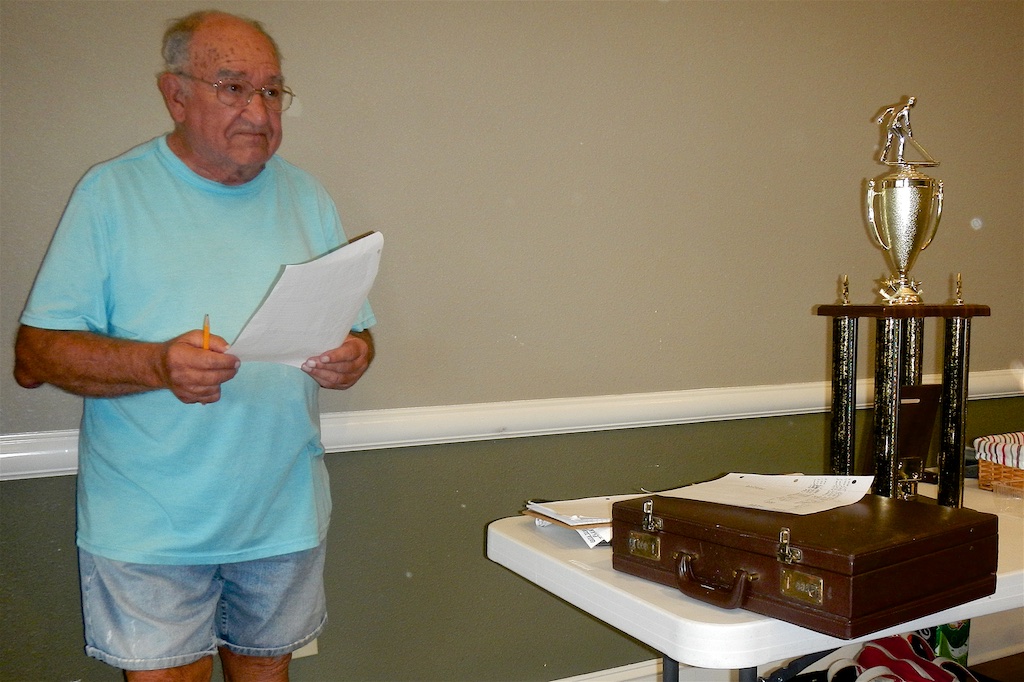 Deland Shuffleboard Club hosted the Intercity End of Season Tournament and lunch. We all met at 8:30 am in their meeting room while Richie and Carolyn assigned our Line Numbers for Group A & Group B (based on averages). Christine said a prayer before we Pledged Allegiance to our Flag. Richie then explained the rules of the tournament before we drew for courts. The winners of each match recorded their scores before drawing for new courts.