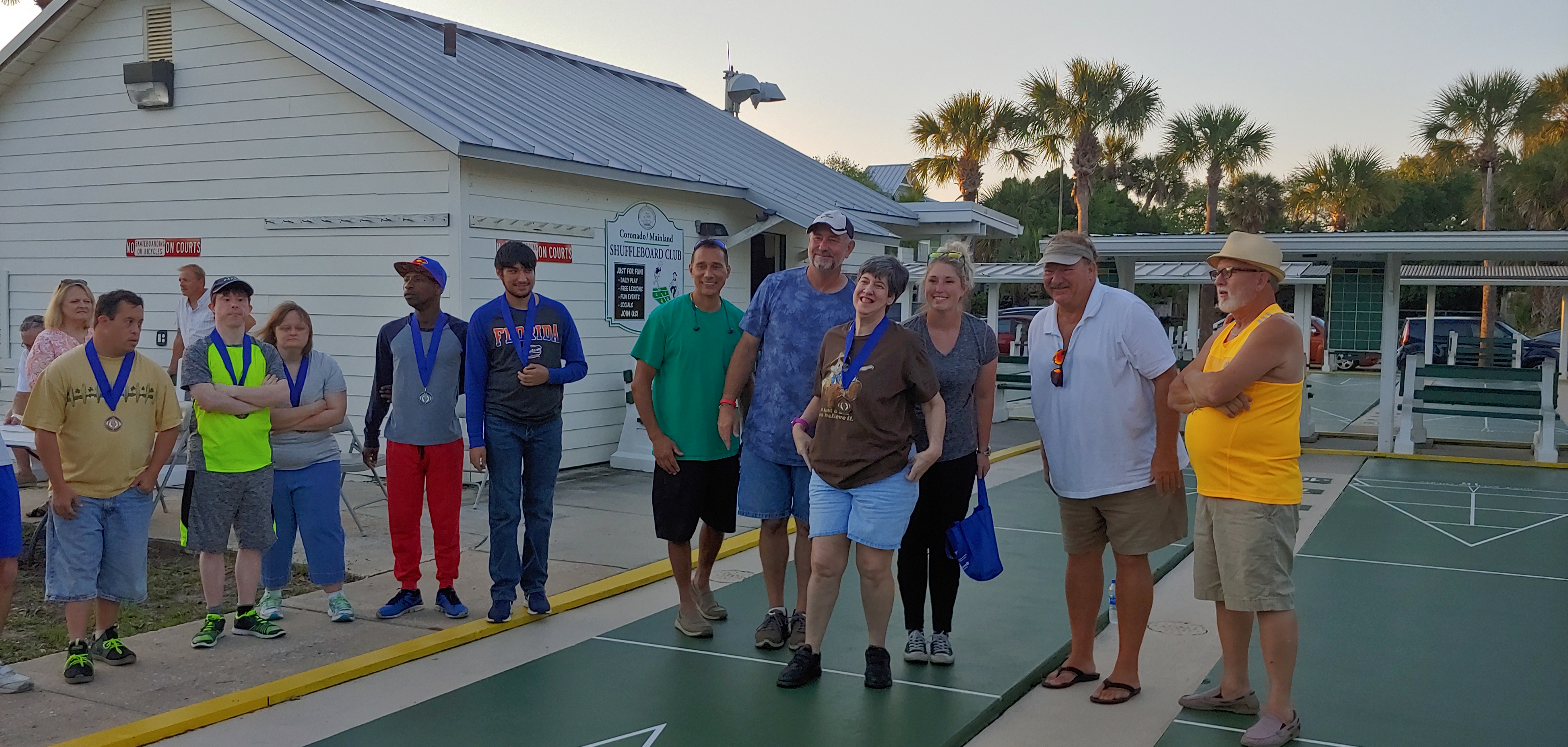 The SPARC Group met for its final play and the award ceremony for the participants. Each of them was given a medal for their participation in this eight week challenge. They had a really good time and learned quite a bit about shuffleboard. As Bill Boyes (director) has returned to Canada, so Tom Carbonell over saw the finals of this event. Thanks to all our volunteers who helped to make this an enjoyable event. We hope to continue this community shuffle again next year.