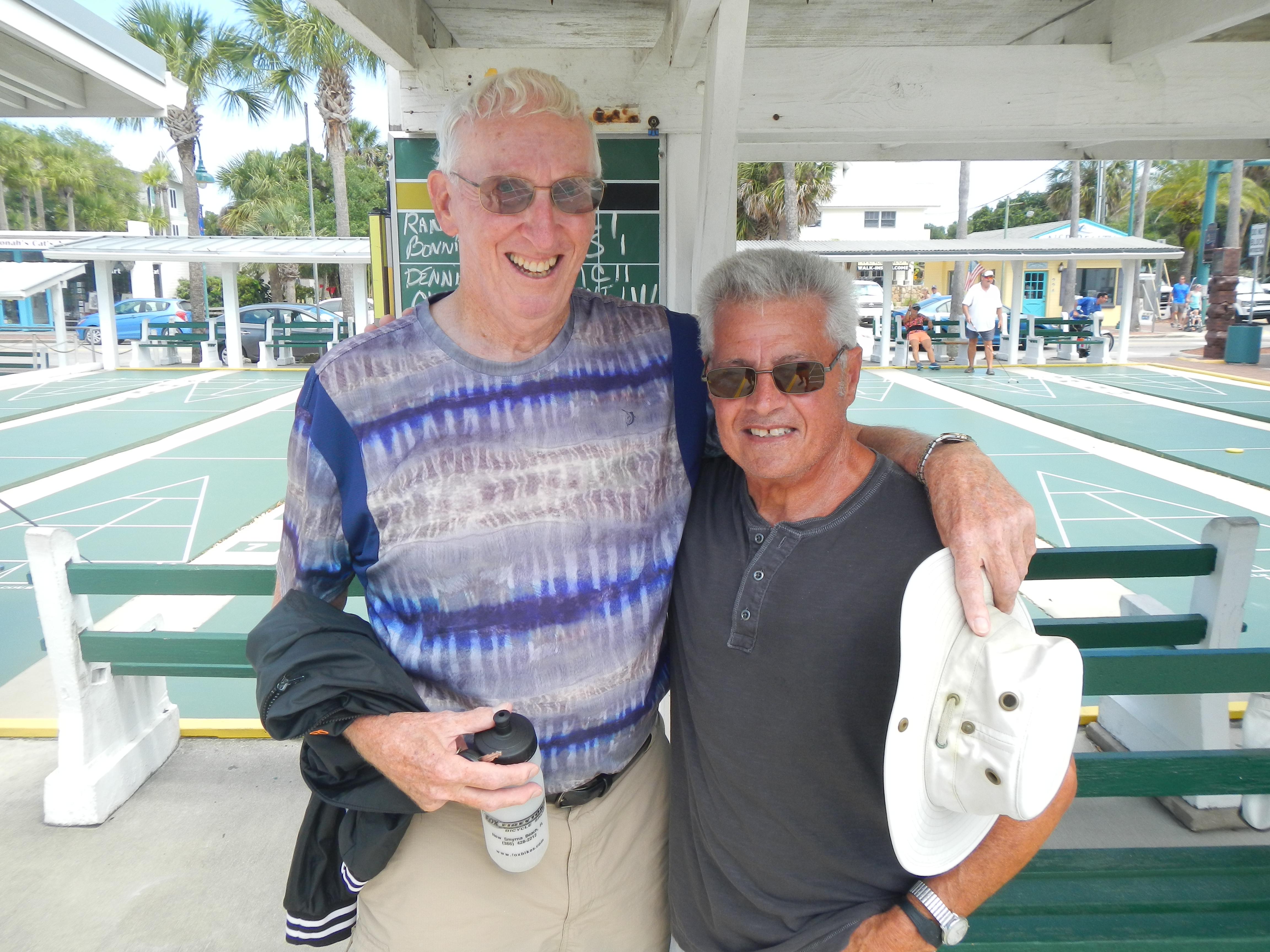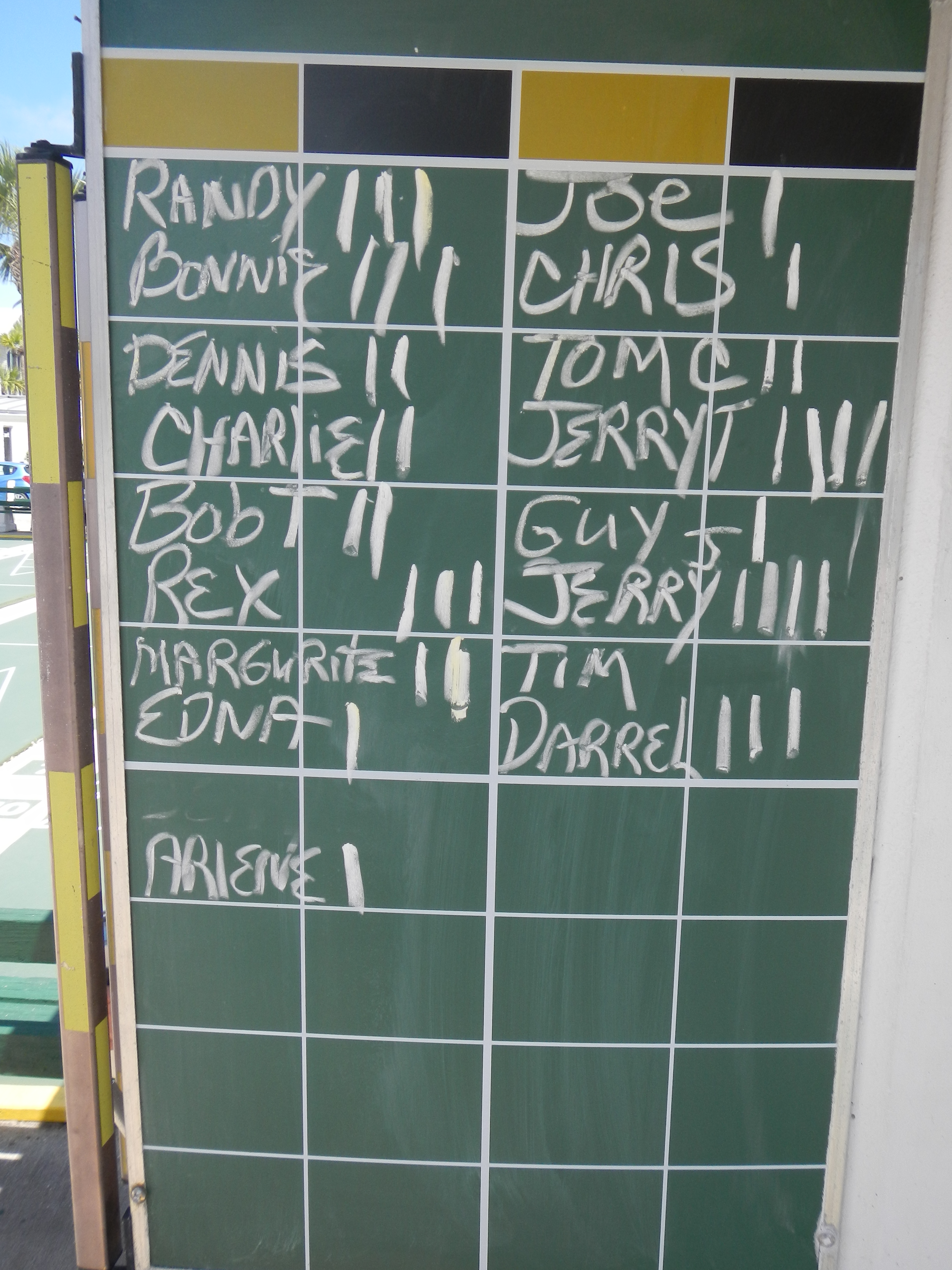 The usual clean up crew arrived to prepare the courts for the Thursday Morning Four Play Challenge. We had seventeen (17) shufflers come to play under a forecast threat of rain. All sun and no rain! Congratulation to Jerry Taylor and Jerry Jabaut who were the only ones to win all four of their matches! We hope to see all of you back here again next week. Ciao!