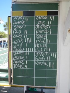 The usual clean up crew arrived to set up the courts for the Thursday Morning Four Play Challenge. Twenty-Three (23) players showed up to play. We played our usual four games of 16 frames recording the winners after each game. Following the games we cleared the courts and congratulated the winners who had won all four of their games. Zak Wonson, Debbie Evans and Jerry Jabaut. Hope to see you all here next week to meet the challenge.