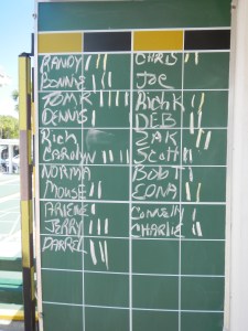 This morning we cleaned up the courts and set the stage for our Thursday Morning Four Play Challenge. Twenty-One (21) shufflers showed up to play. We welcomed players from Orange City and Deland who joined us for the day. After four games recording the winners, we are happy to congratulate Tom Rimmer and Carolyn Burrell (from Deland) on winning all four of their matches. Hope to see you here next week for the challenge. Ciao!