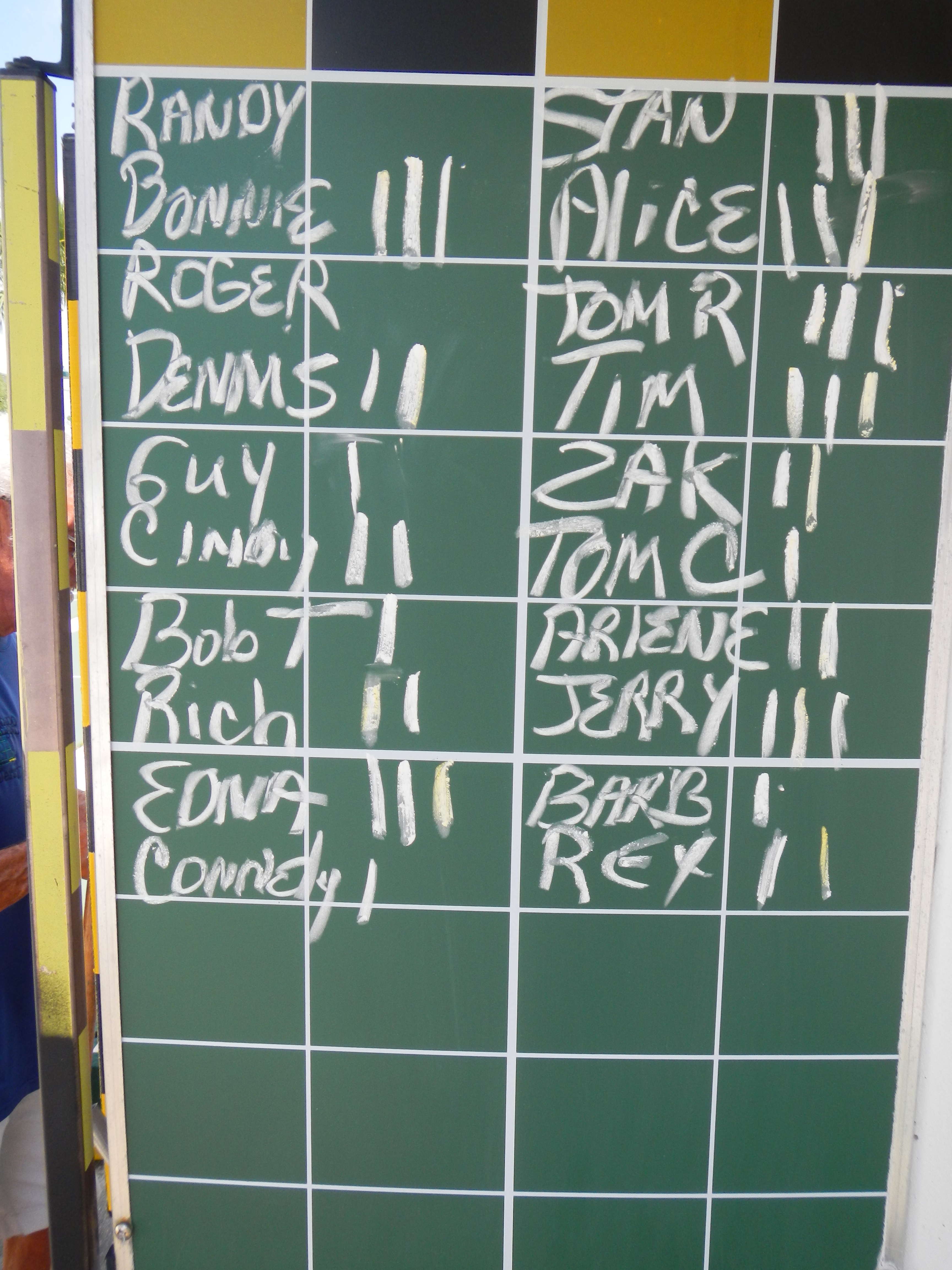 The usual clean up crew arrived early to clean up the debris from last night’s storm. Twenty (20) shufflers showed up on this beautiful morning for the Thursday Morning Four Play Challenge. We played all four of our matches recording the winners, drawing new courts and partners after each matches. At the end of the day Seven (7) of us managed to win three matches but no one was able to get all four. Today was a really good challenge. Hope to see you back next week to see who can win all four of their matches. Ciao!