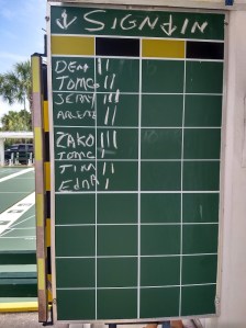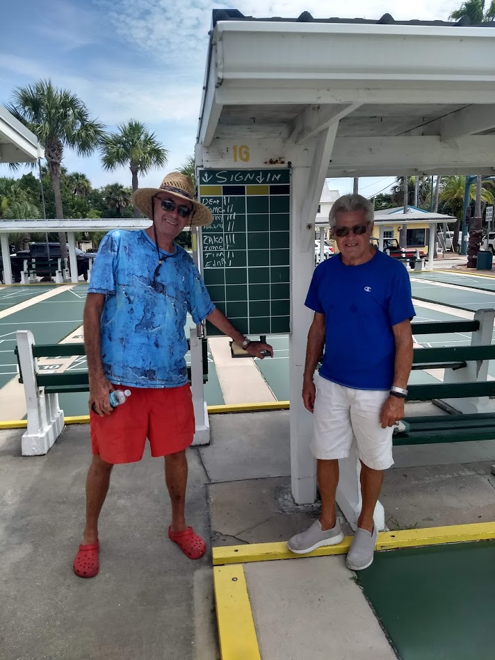 So we had a small “steaming” weather tested group show up to shuffle in the Thursday Morning Four Play Challenge. I was not able to attend so Dennis stepped-in and Tom Carbonell sent me the pictures with the results. They had Eight (8) shufflers come for the challenge. No one was able to win all four games but Zak and Jerry each found a way to win at least three (3) matches. Congratulations! Hope to see more of you shuffling at next week’s challenge. Ciao!