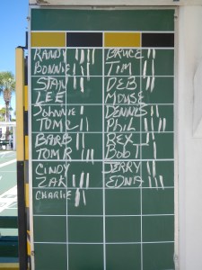 The usual clean up crew arrived to prepare the courts for the Thursday Morning Four Play Challenge. We have been pleased by the job the city is doing painting our Club House. We had Twenty-One (21) shufflers come for the challenge. After playing our four games, we need to congratulate Randy Radke and Phil Wade for winning all four of their games. Hope to see you all back here next week. Ciao!
