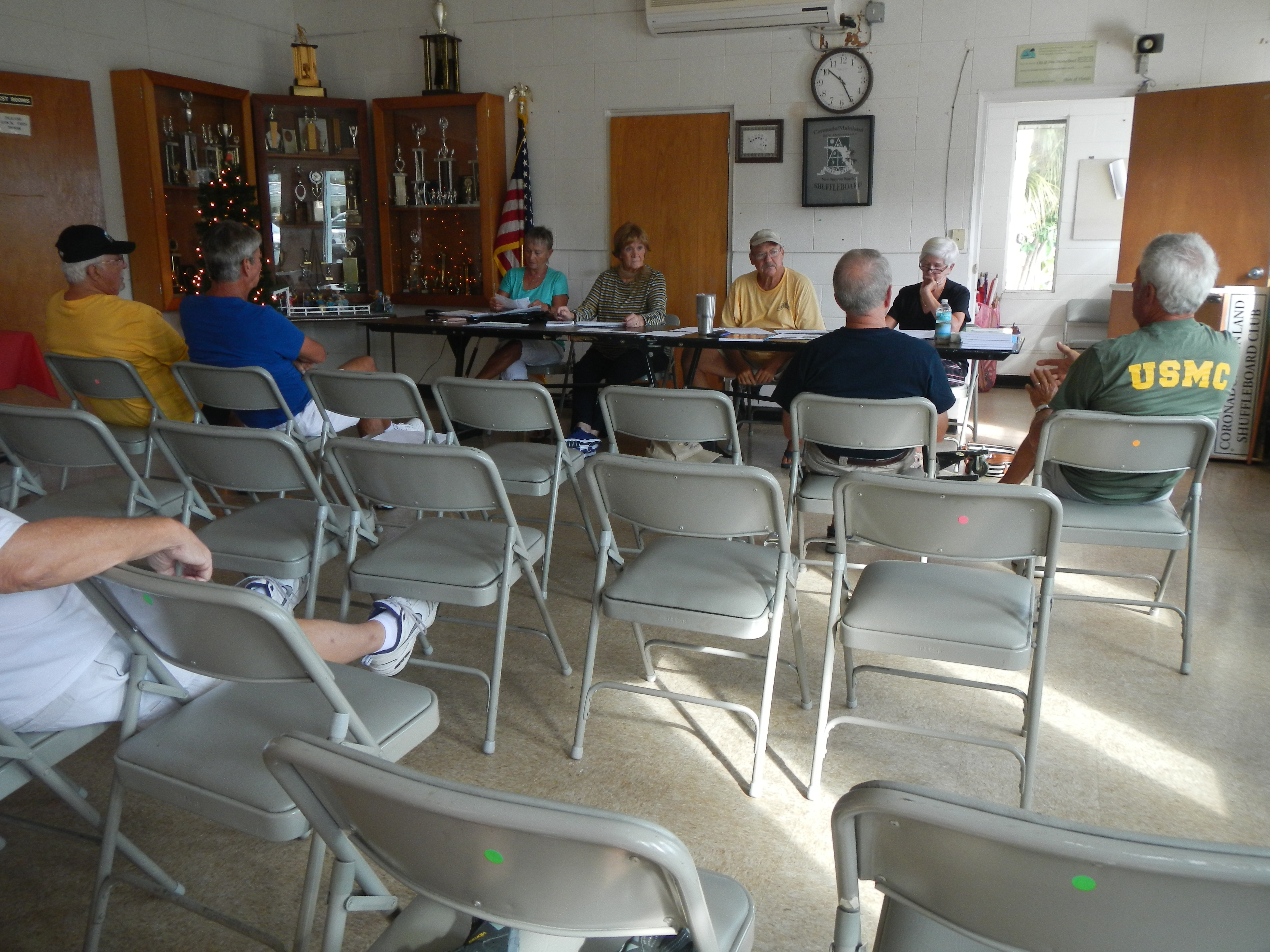 The Executive Board met this morning at 10:00 am in the Club House. Seven (7) board members attended with only Tom Grubb still up North. The minutes of the meeting will follow at a later date. The General Club Board met today at 11:00 am and Twenty-One (21) members attended. Following the meeting most of the members remained for regular shuffleboard play. Hope to have more members attend next month.