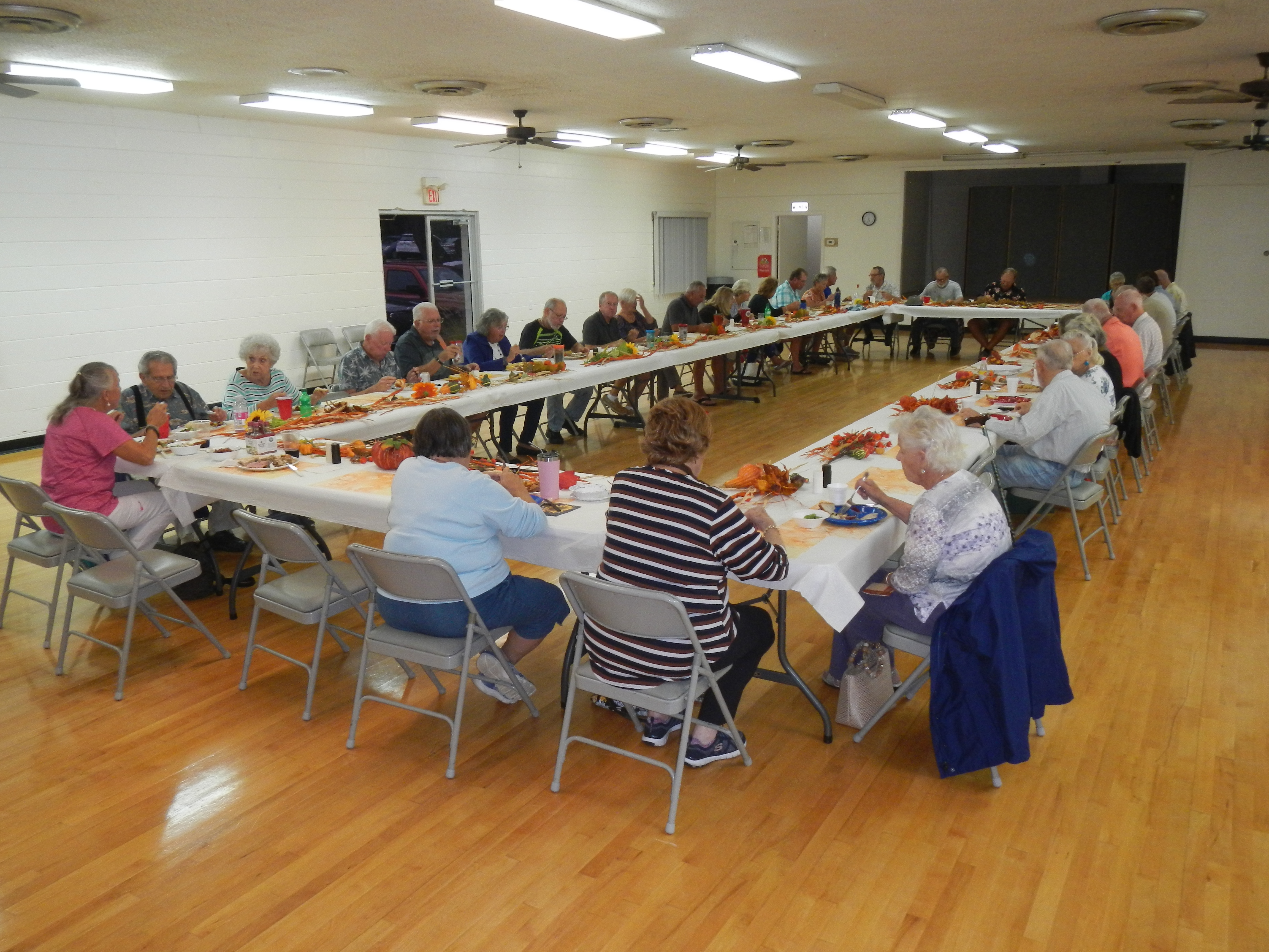 The tables were set up and the room arranged by Tom Carbonell. Johnnie Conner is back and has once again out done herself. The decorations were festive and beautiful for our Club’s Thanksgiving celebration. Thirty-Two (32) people came to the Pot Luck. The Club supplied the turkey (prepared by Fortinis) and the ham (prepared by Tom Carbonell). The rest of the fixings from our participants were wonderfully delicious. Joan Best said a prayer for us. We all ate too much and enjoyed each others company visiting with some of our snowbirds and others who have returned. Following dinner, all the tables and chairs were cleared and thereafter some of the diners stayed for a fun game of Bunco. Wishing all of you and yours a Happy Thanksgiving week. Hope too see you all at our Christmas Pot Luck next month. Ciao!