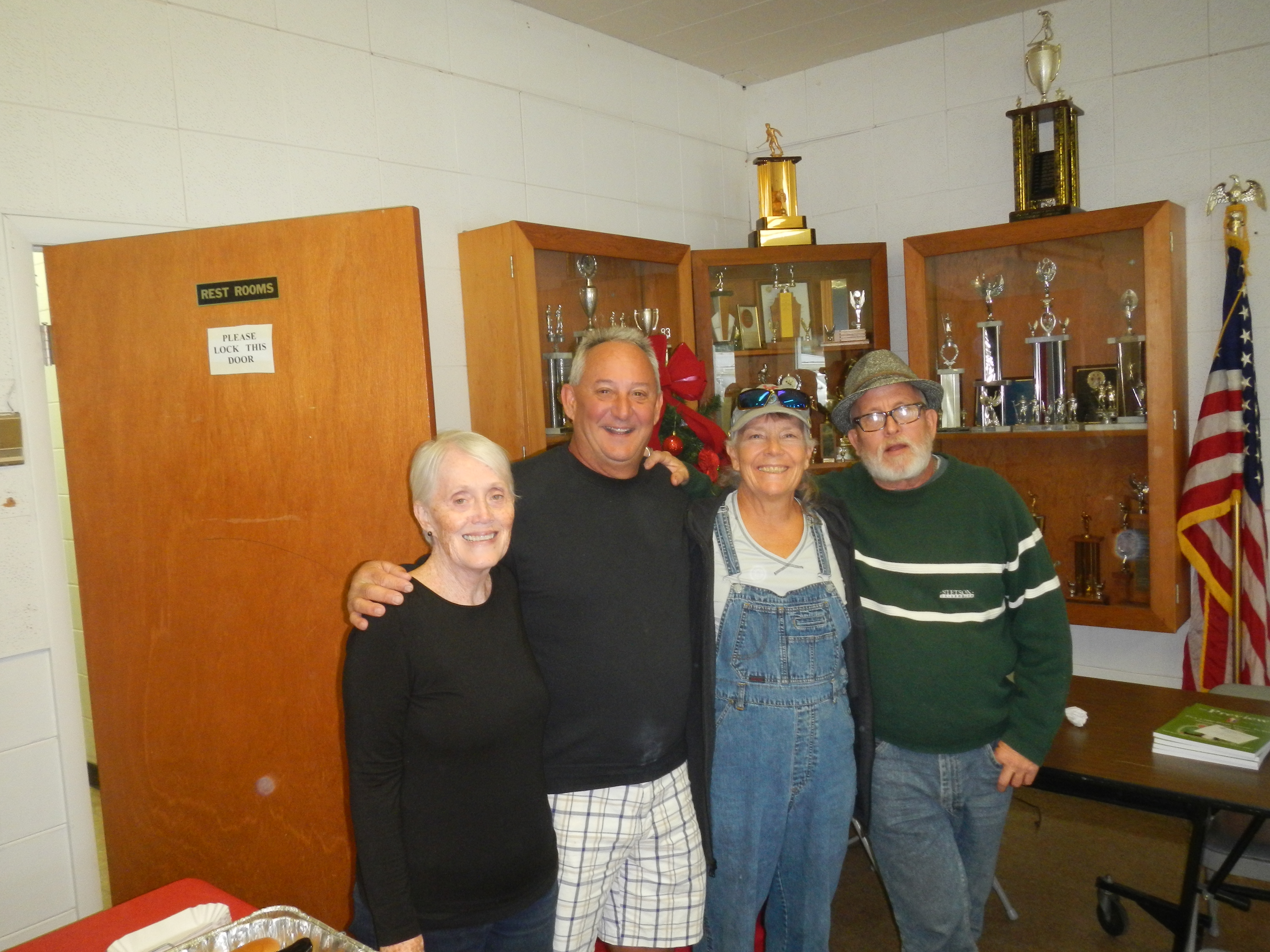 This morning was pretty cold for us Floridians at 59 degrees, but we still had Thirty-Two (32) determined shufflers show up for our November Fun Day. Rich Kordeleski and his team did a great job setting up the courts and getting them ready for play. Barb Fortini registered all the players and collected the entry fee. Mary McConnell and Candy Kordeleski took over kitchen duties and had hot coffee and tea ready to ward off the cold. Allen Best assigned the team captains before the beginning of play. We had eight (8) teams of four players on each team. Following the games, Barb Fortini tallied up the scores while the rest of us enjoyed hot dogs, chips, drinks and dessert. Mary McConnell won the 50/50. Then Allen read off the winning teams from high to low score .