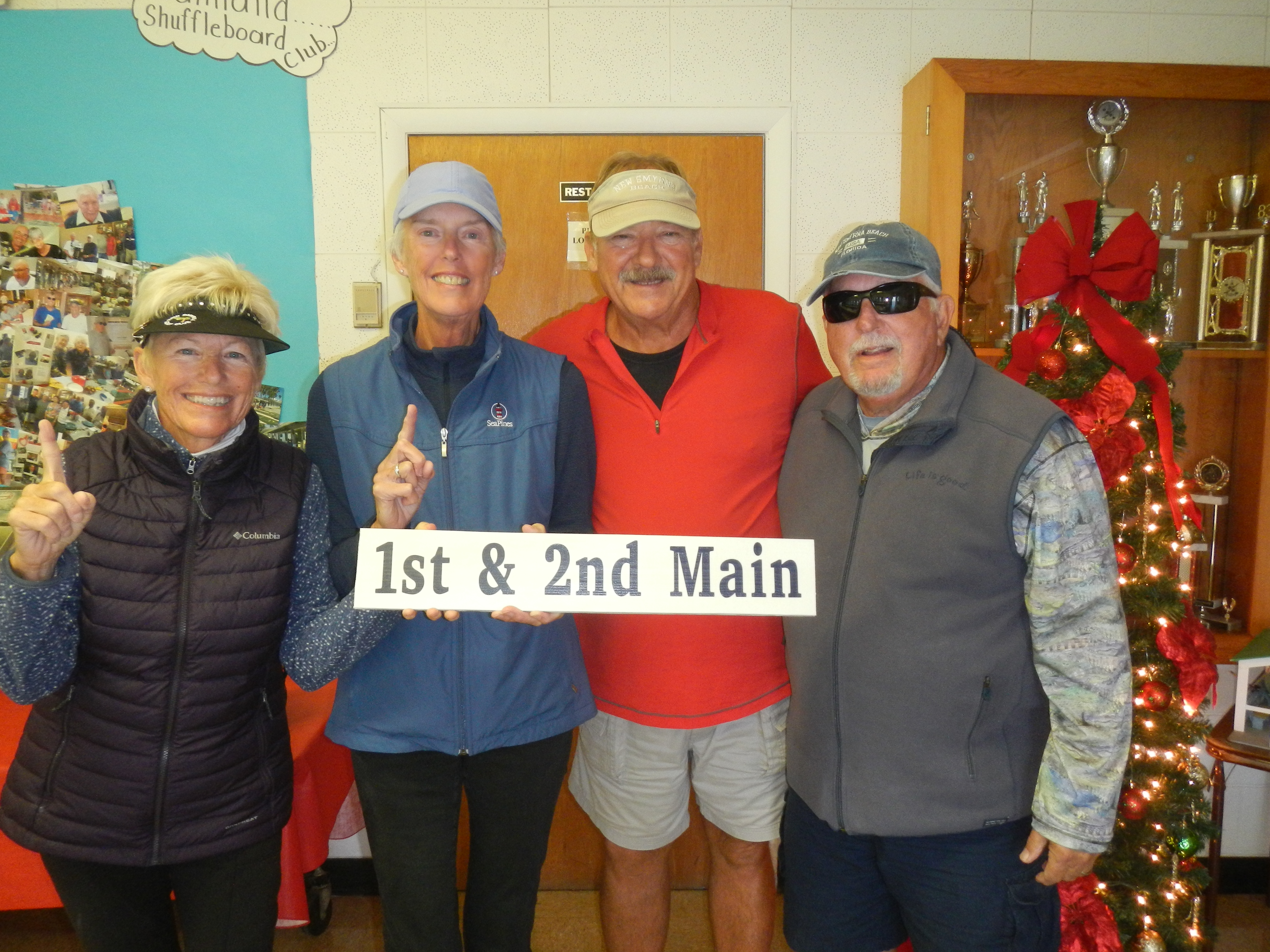 Our Tournament was a success with the help of all our wonderful volunteers. Tom Carbonell came the day before to set up the tables before Johnnie Conners came out to decorate all the tables. Tom also supplied us with his wonderful pulled pork sandwiches and soup. Rich and Candy Kordeleski, Arlene and Jerry Jabaut, John and Barb Fortini, and Mary McConnell helped to get the kitchen and the courts ready. We were pleased to welcome Ten (10) Amateur Teams and Seventeen (17) Pro Teams for the challenge. Bonnie Radke was the Director and with the help of Rick Enright, we got the tournament off to a smooth start. We also had some wonderful sponsors who supplied flyers and banners. Please visit our sponsors and let them know you are from the Coronado/Mainland Shuffleboard Club and would like to thank them for their support. Thanks to our volunteers who cleaned discs and swept courts during the tournament; Jack Koppelma, Barb Hales, Gerry Bousquet, Joan Sanford, the Kordeleskis and the Jabauts. Congratulations to all our Coronado Shufflers, visiting teams and finalists.