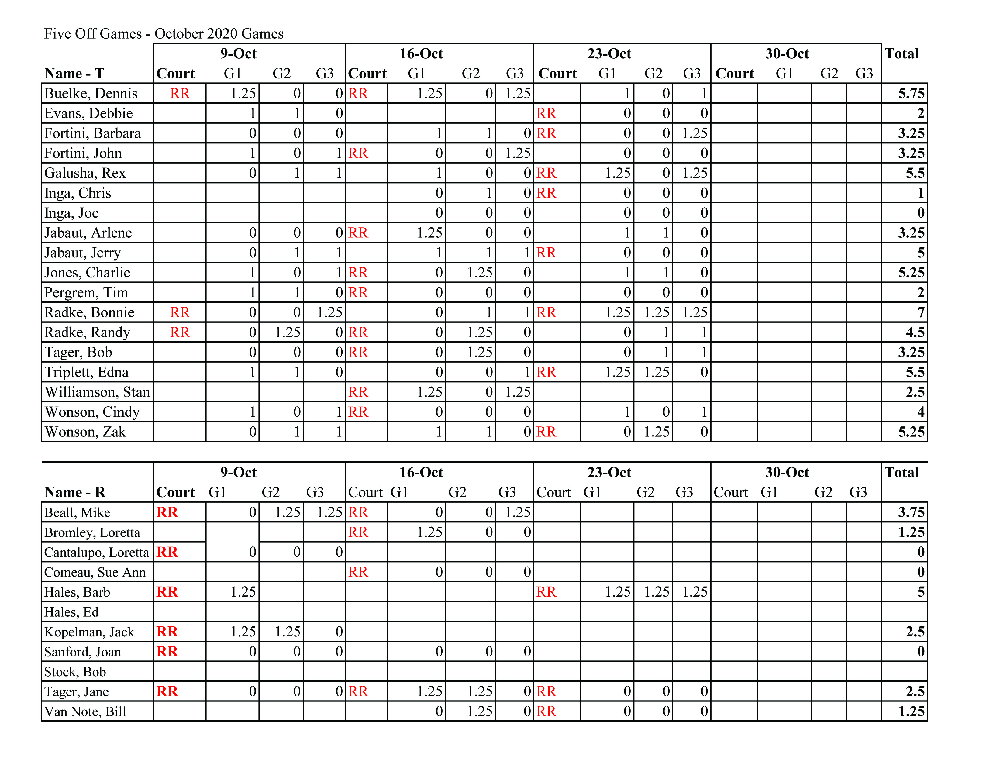 Hi folks. Here is the local monthly tournament results for our club. Hope to see you all there next Friday. Really good turnout so far.