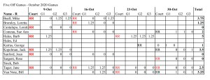 This morning Zak announced the winners from the October month’s tournament. So pleased to announce our PROS: 1st – Dennis Buelk, 2nd was a tie – Edna Triplett/Rex Galusha and our 3rd was also a tie – Zak Wonson/Charlie Jones.