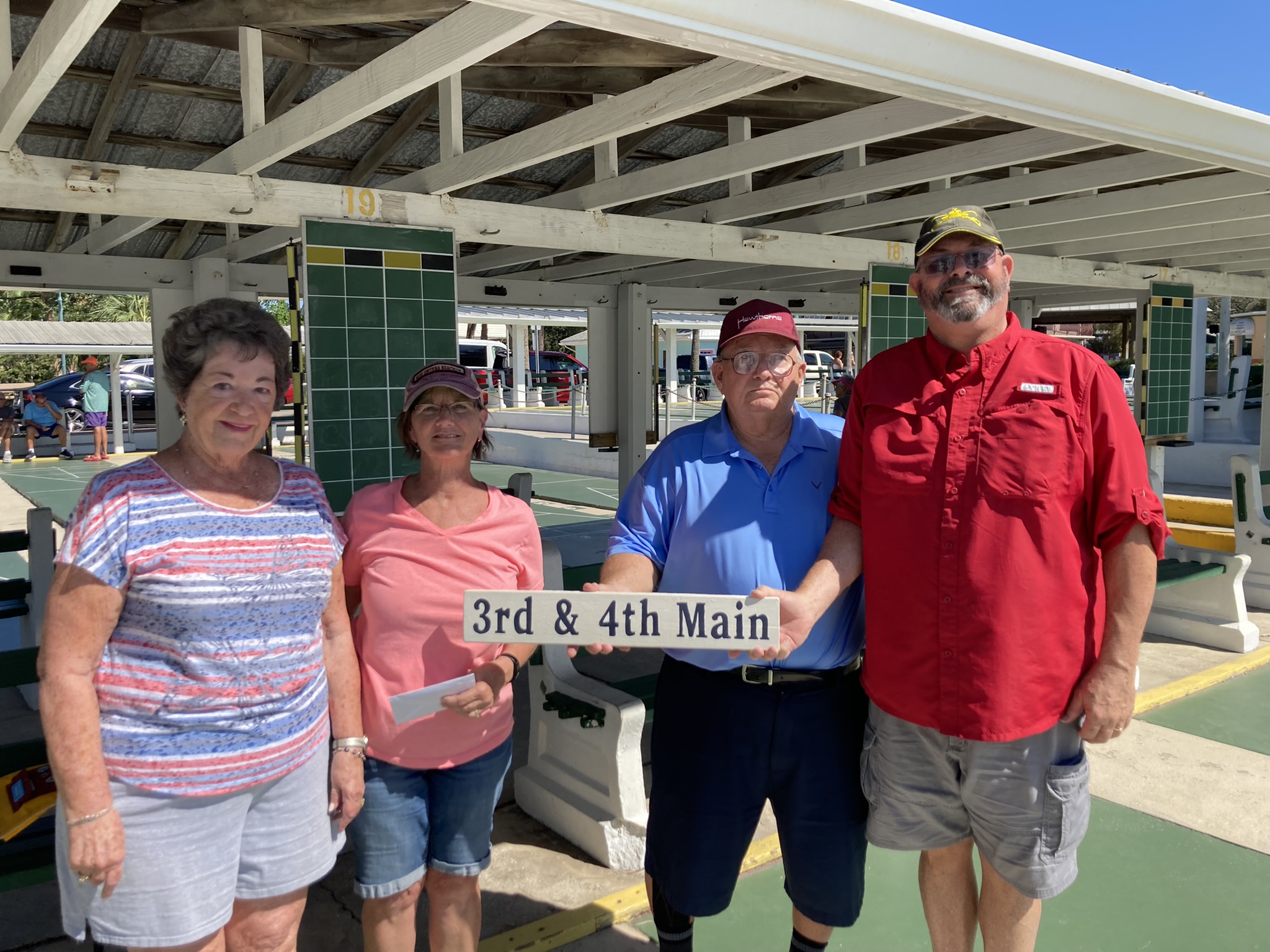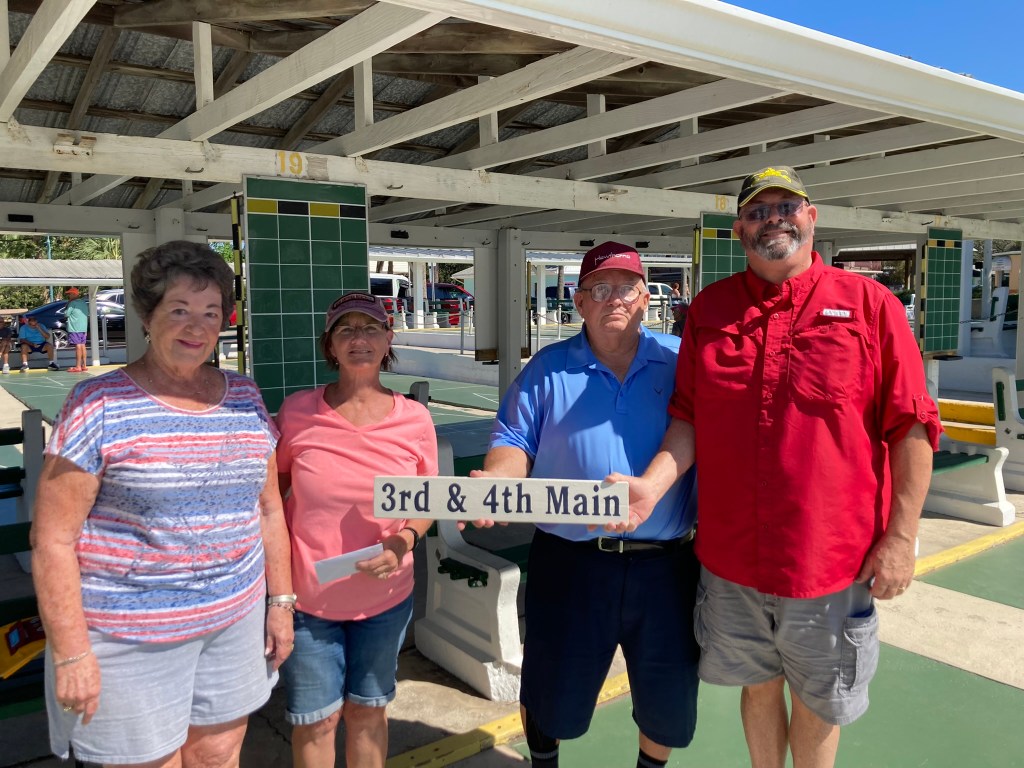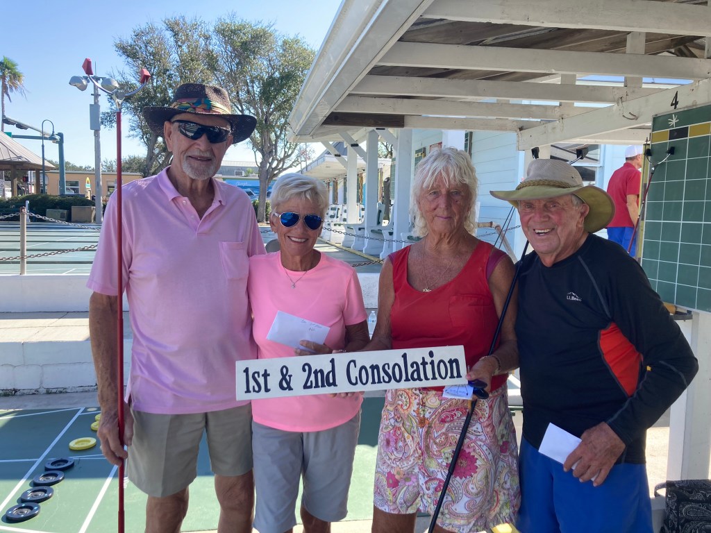 On Oct 13 and 14, Coronado Mainland Shuffleboard Club hosted the ND 03 Any Doubles Tournament. Mike Beall had done a great job preparing the courts and Zak had our discs running so fast. The weather was beautiful for both days. Chris Inga was our Director and we had plenty of volunteers to thank for all their help. Gail Kadar, Judy & Scott Menard, Bill Barney, Dick Wood, Cathy Feindt, Jane & Bob Tager, Jerry & Arlene Jabaut, and of course Cindy and Zak Wonson. We had many sponsors to thank for their support. We have five Corporate sponsors: H2Health, Springhill Suites, G&W Roofing, Tina Prichard (Coldwell Banker) and the Preston Law Firm. Our Community sponsors were Anders & Anders, Davis Bros HVAC, Todd Perry (State Farm) and several club sponsors: Gail Kadar, Cindy & Zak Wonson, Jerry & Arlene Jabaut, Janet Shira and Nancy Grummer. Congratulations to all the participants especially those who are designated CMS shufflers.