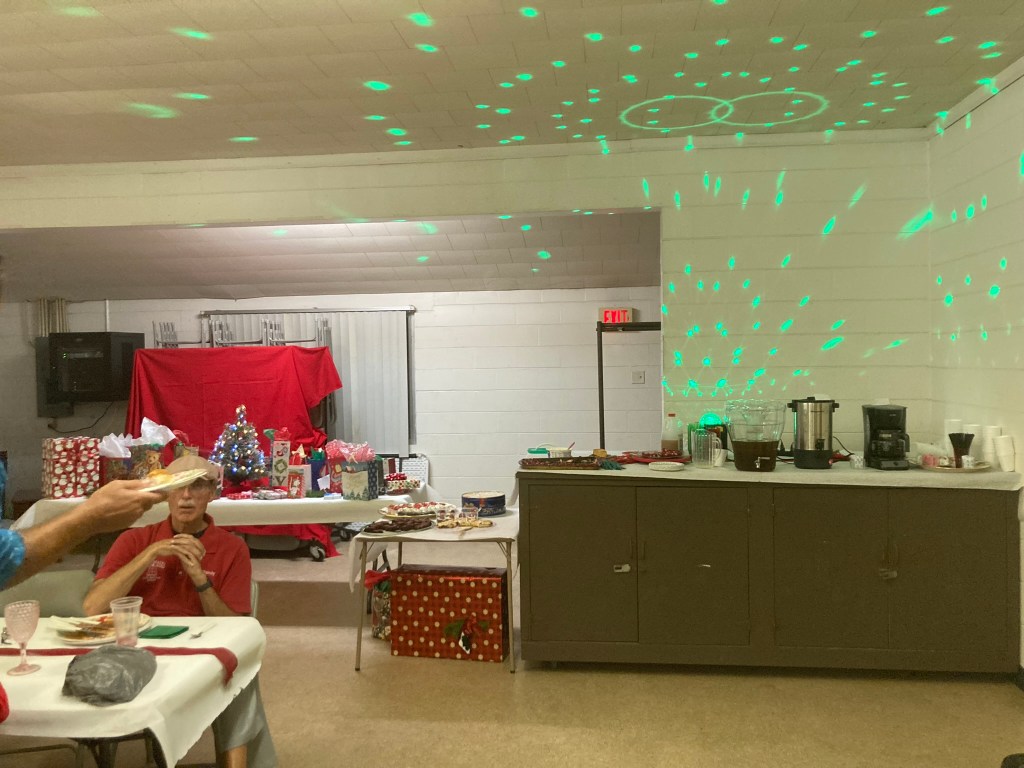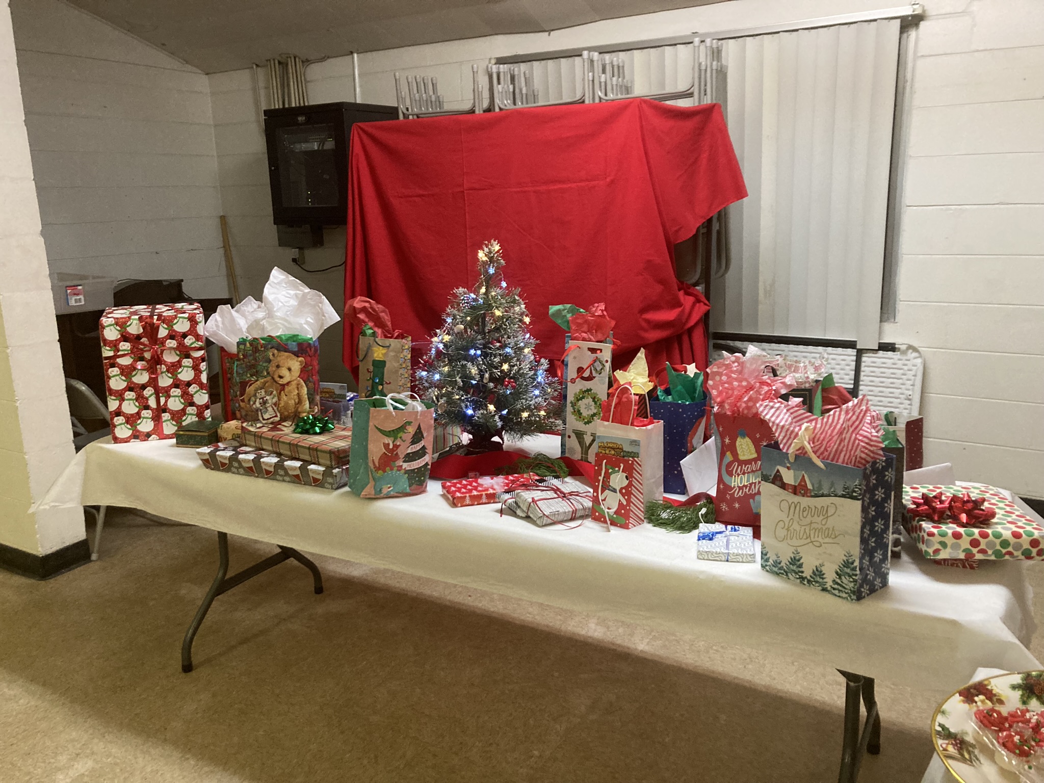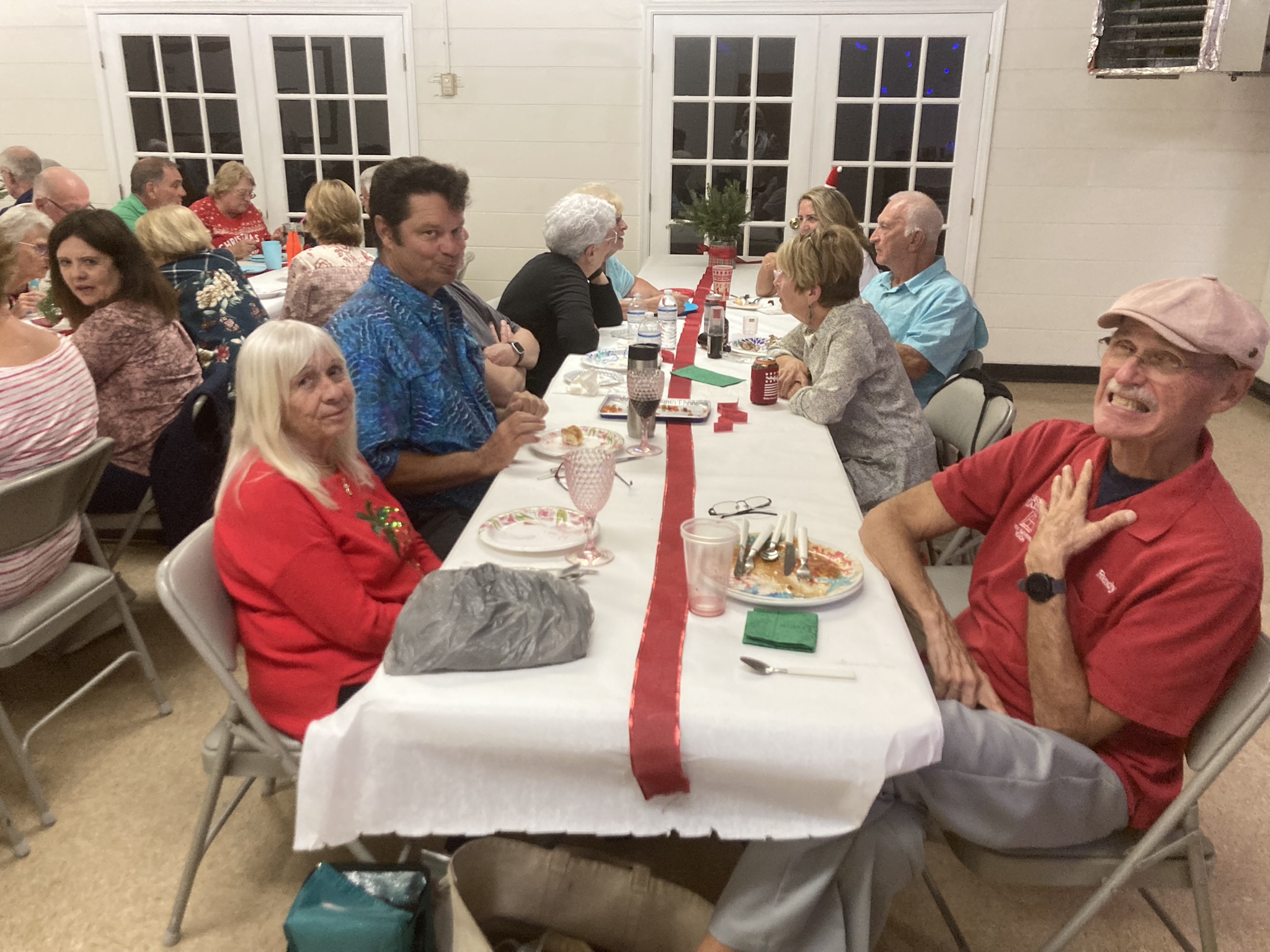 Everyone helped with the clean up, folding tables and putting the chairs away. All in all it was a memorable evening of fun and camaraderie. Hope everyone has a very Merry Christmas season.