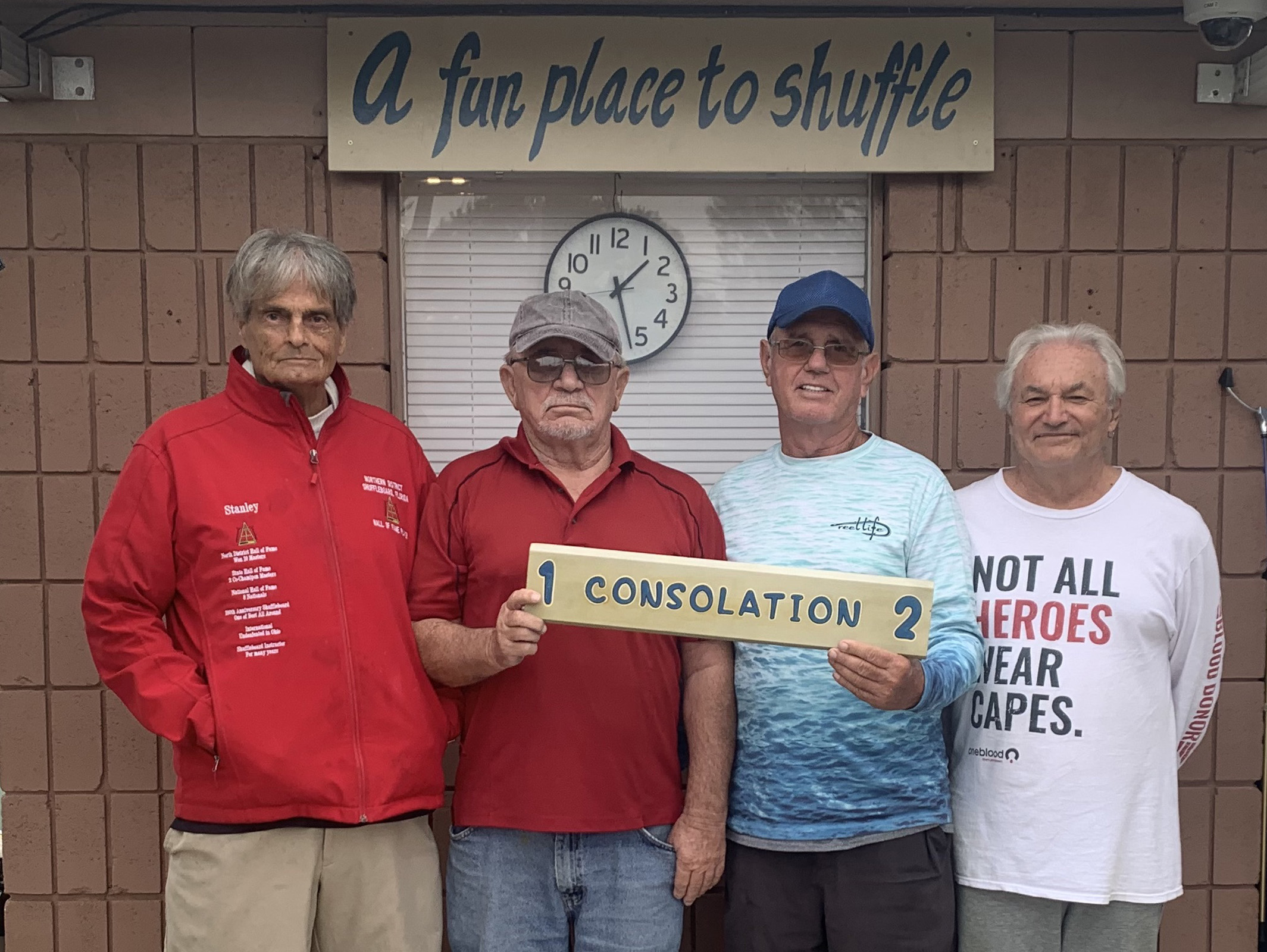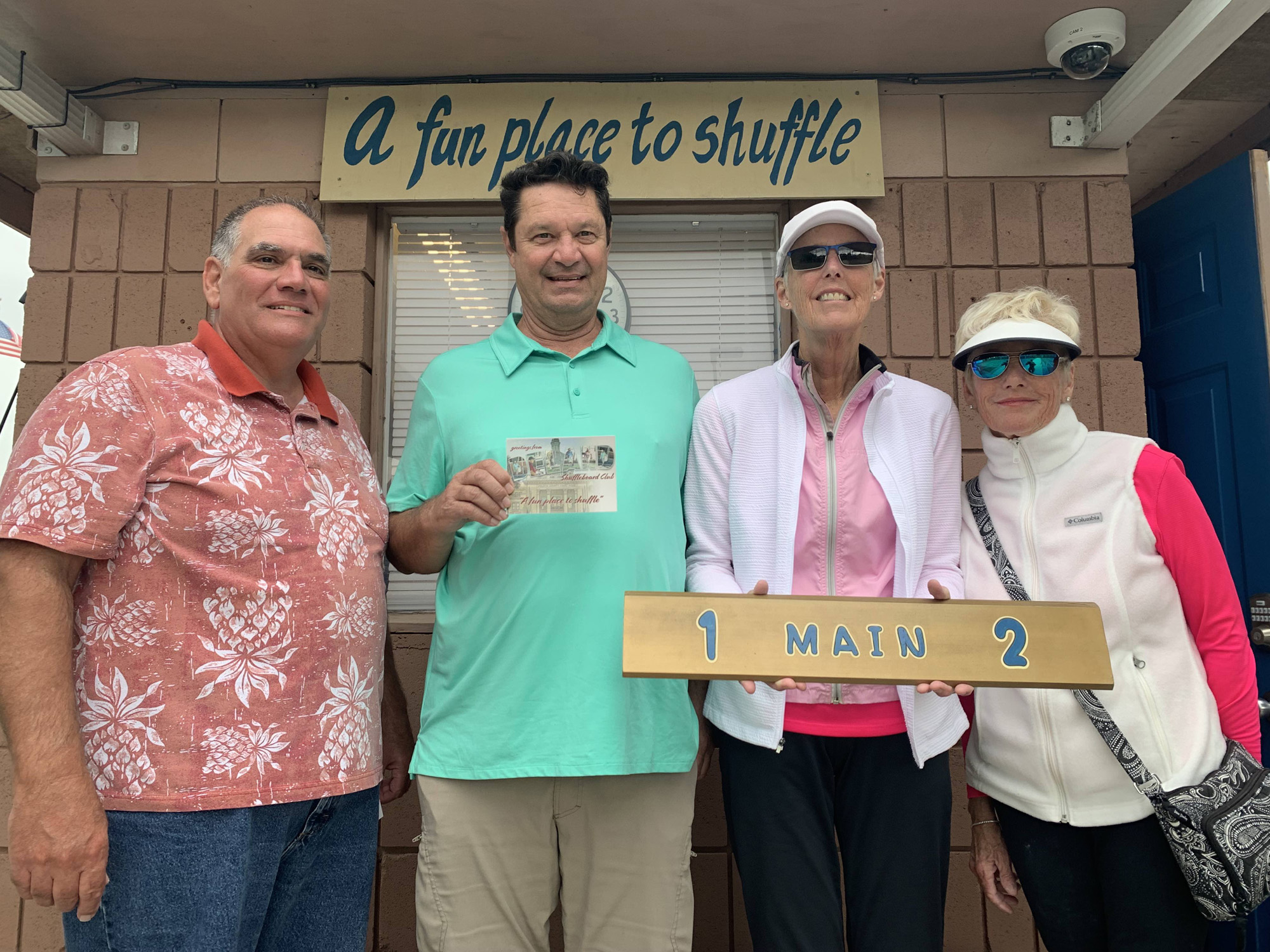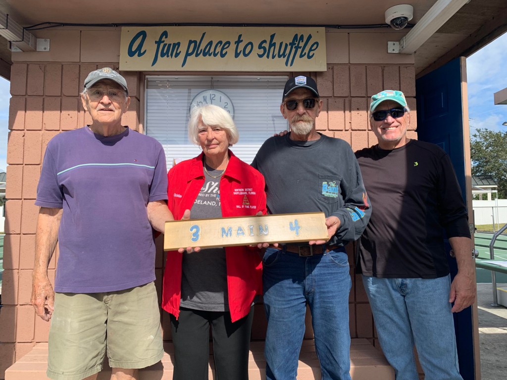 The Deland Shuffleboard Club hosted the ND01 Any Doubles Tournament on Jan 18/19, 2024. Richie and Caroline Burrell were the directors and Florida Orthopaedic Associates and the Deland Shuffleboard club were the sponsors. We had a bit of rain on the first day but were able to complete the tournament on Friday.