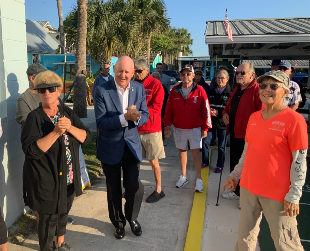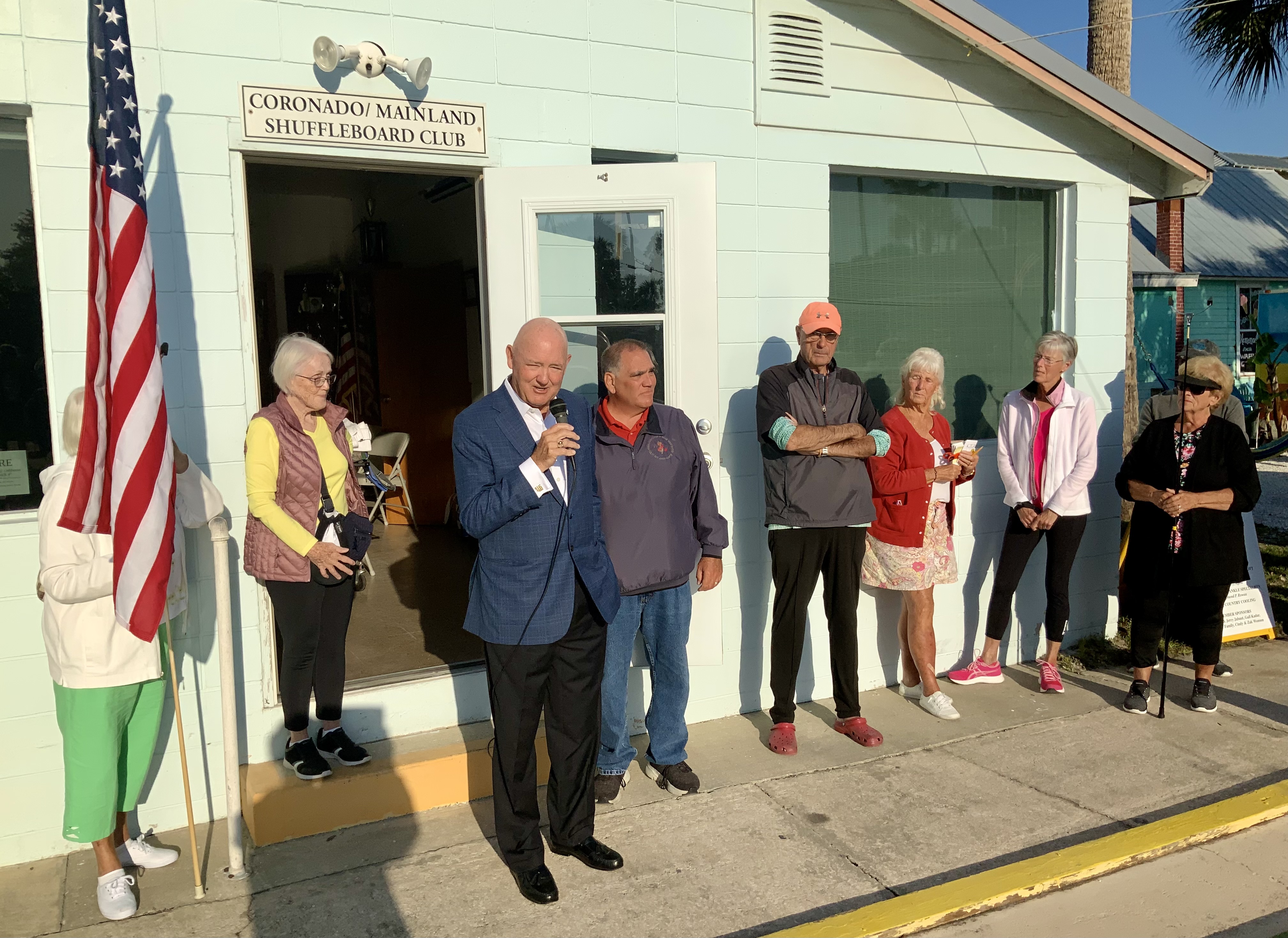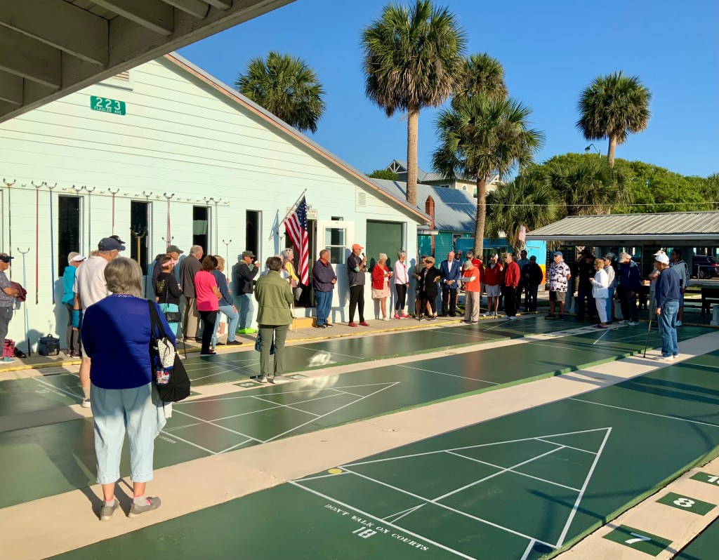 Well the end of the 2023-2024 Shuffleboard Season came to an end at the Coronado/Mainland Shuffleboard courts on March 21, 2024. The Masters Tournament features the top 8 Pro Men, Pro Ladies, Amateur Men and Amateur Ladies in a competition to see who is #One for the season. Zak Wonson was our director with the help of Tom Brown and Phil Wade. Cindy Wonson did a wonderful job with the charts and the cards so that the tournament was flawless. The New Smyrna Beach Mayor Fred Cleveland came to open the ceremonies along with our Zone 2 Commissioner Lisa Martin and Rob Salazar the Leisure Services Director. Christine Giumarra gave the blessing and Zak gave us the rules. Randy Radke was our photographer. We would like to thank all the many volunteers who made this tournament possible. All of the pushers did a fantastic job keeping the discs rolling and the support volunteers kept the courts beaded and the discs waxed. I can’t say enough about our Court Manager, Mike Beall. Everything was so well maintained. The only problem was the weather. Thanks to all our sponsors who have supported our club throughout the season.