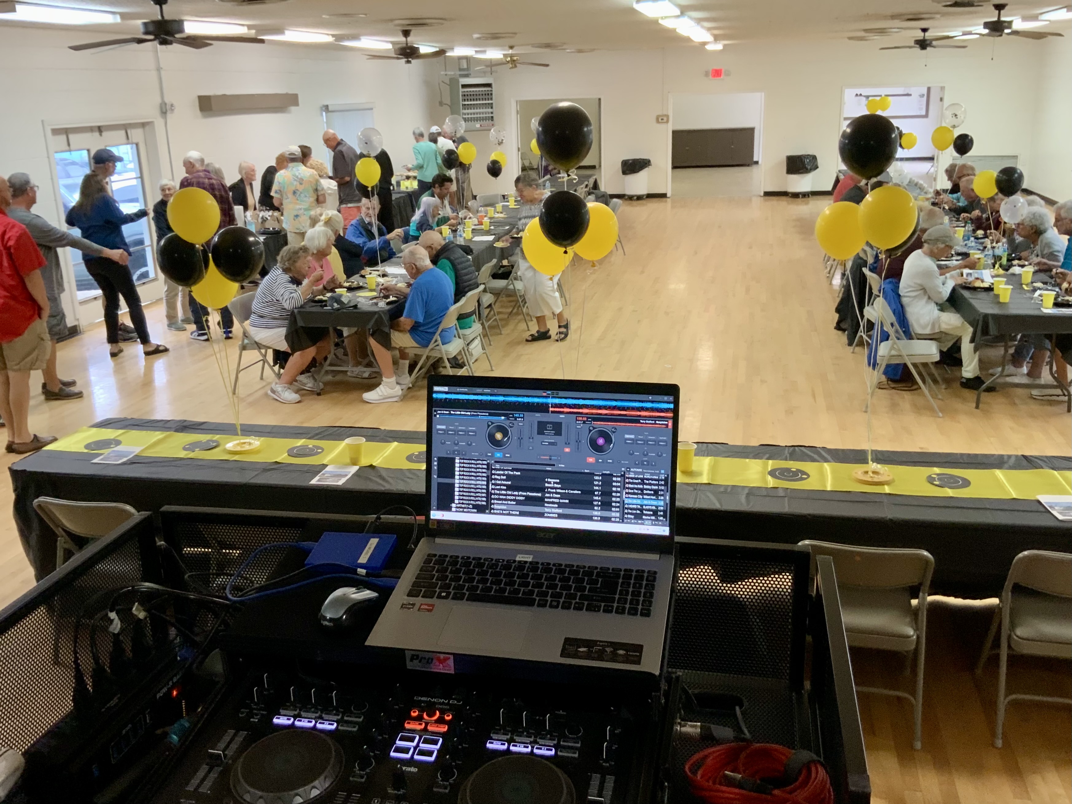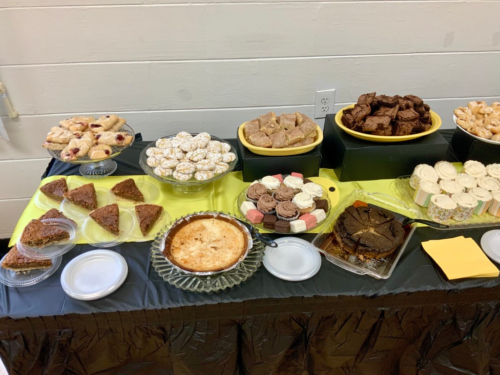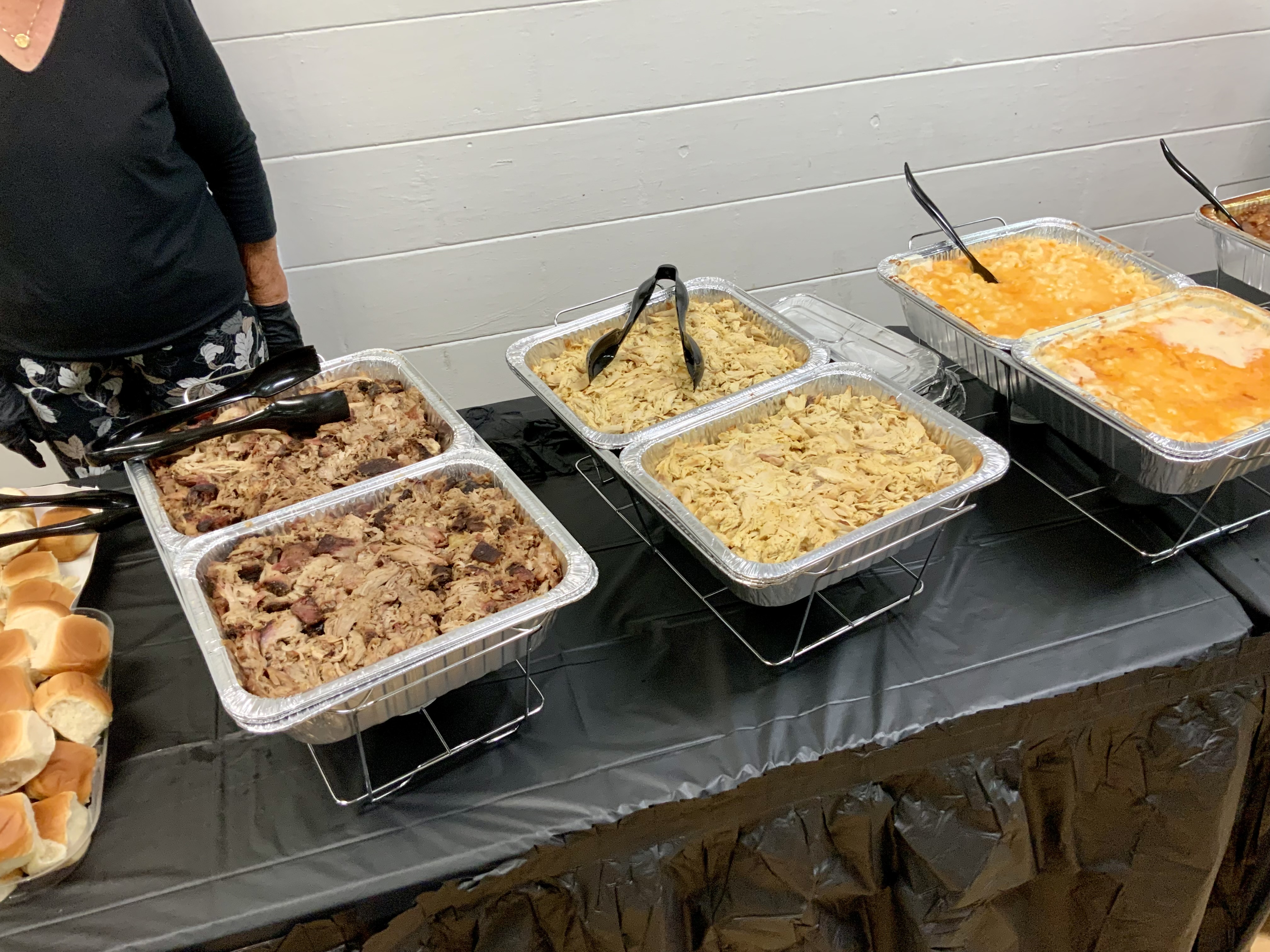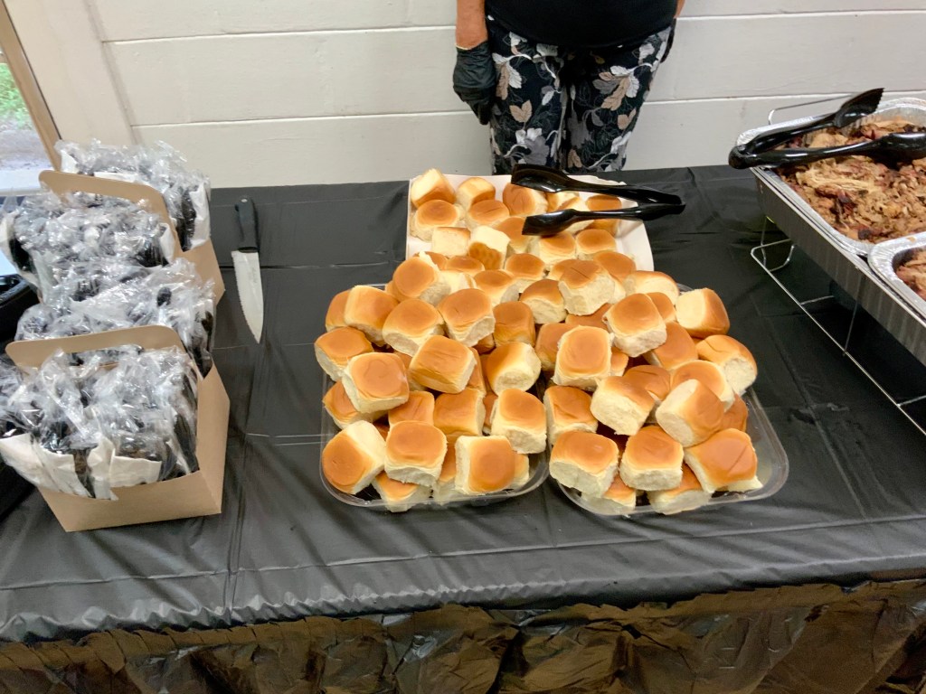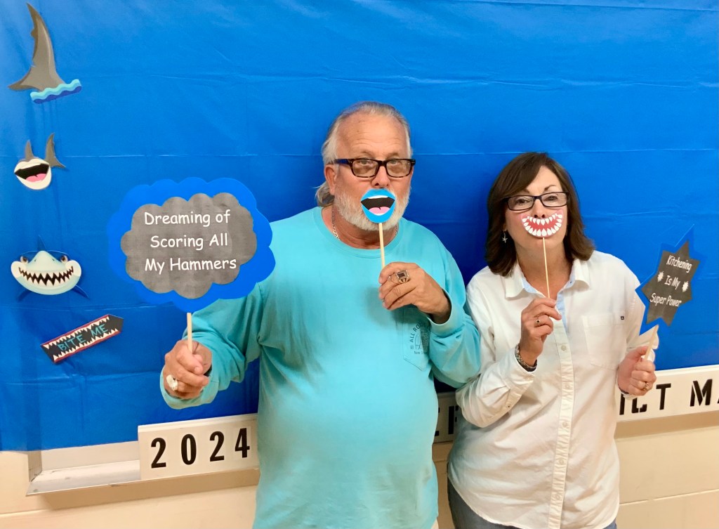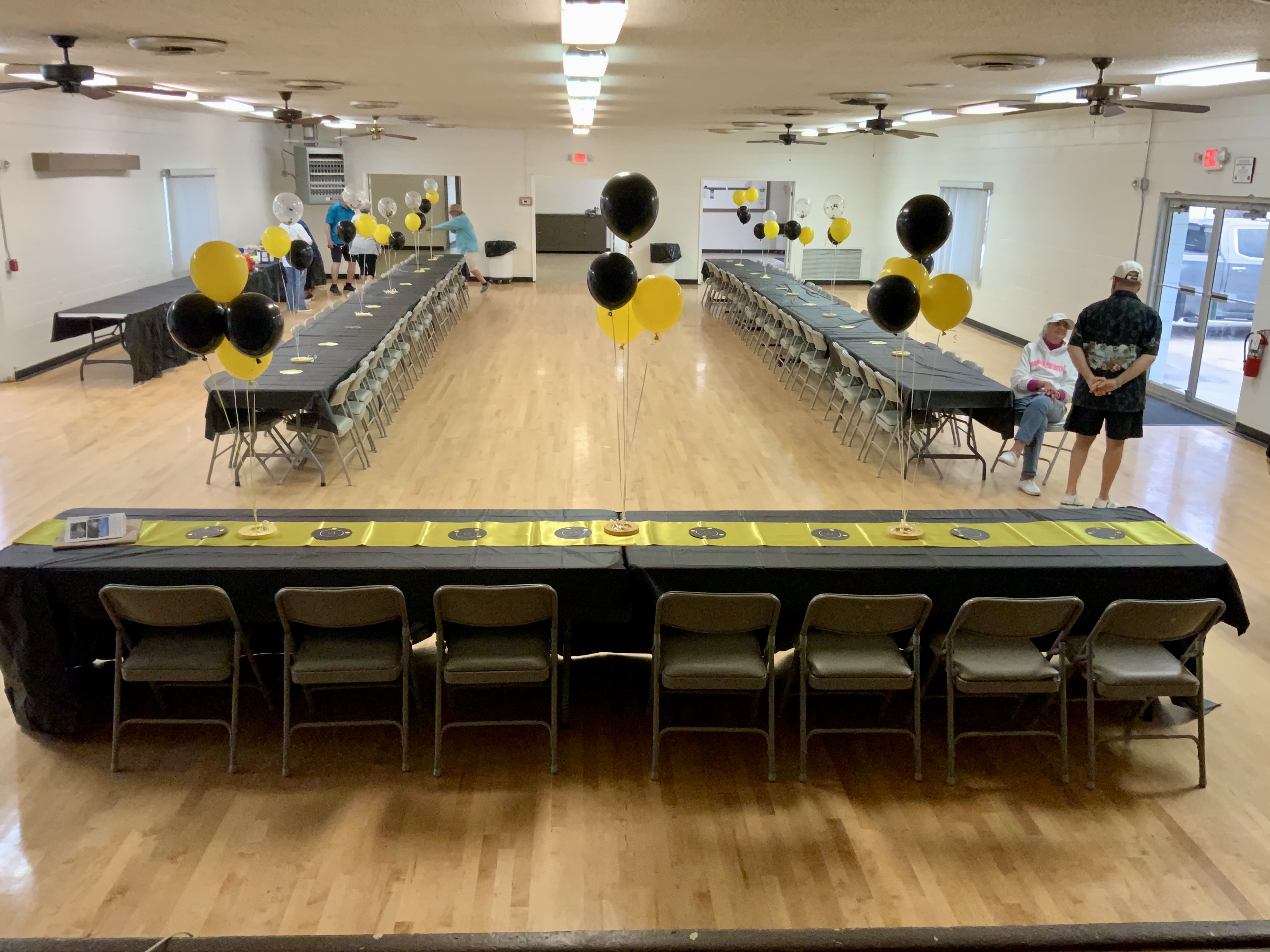 Due to the second day of the Masters Tournament being cancelled by rain, we had everyone arrive at 11:00 AM for our Awards Banquet. Janet Shira and her team of Volunteers (Arlene Jabaut, Pat Llodra, Jan and Bill Sweet, Tom Grubb and Mark Gephart) did a fantastic job setting up all the tables and decorating the room. Stan Williamson hired DJ/MC Music/Cruisin Central Florida to entertain us with background music. Cindy did a great job with the summary board showing all of the shuffler’s scores in the tournament. The Awards table was set up with the four Master’s Trophies and the Tournament of Champions (TOC) Frank Wilson Special Award Plaques for the winner of the Amateur Ladies and Amateur Men’s division. Colt’s Pig Stand catered our event with barbeque pork, chicken, mac and cheese along with coleslaw and rolls. Fantastic deserts (so yummy) were supplied by our members. Tim Pergrem set up a TV with a slide show of shuffler events and winners. Photos were supplied by Randy Radke.
