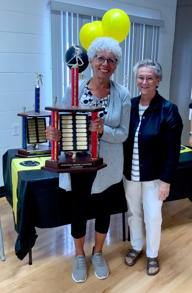Katy Walker presented the Marion Lohbusch Amateur Ladies trophy to Marilyn VanLare.