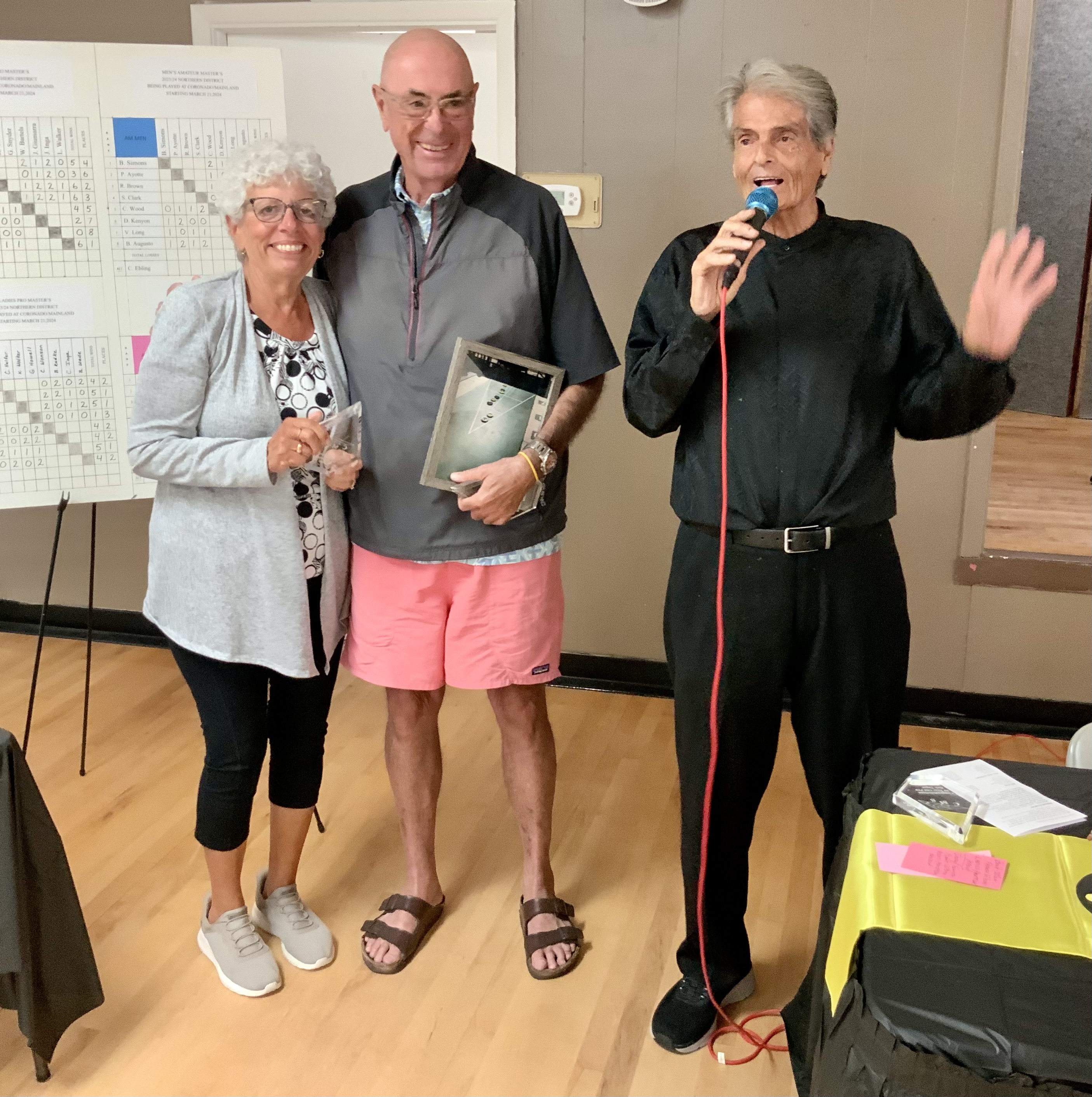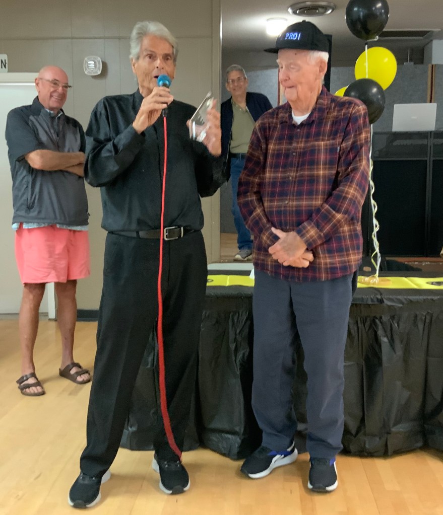 Stan Williamson presented his Amateur Men’s trophy to Bob Augusto.