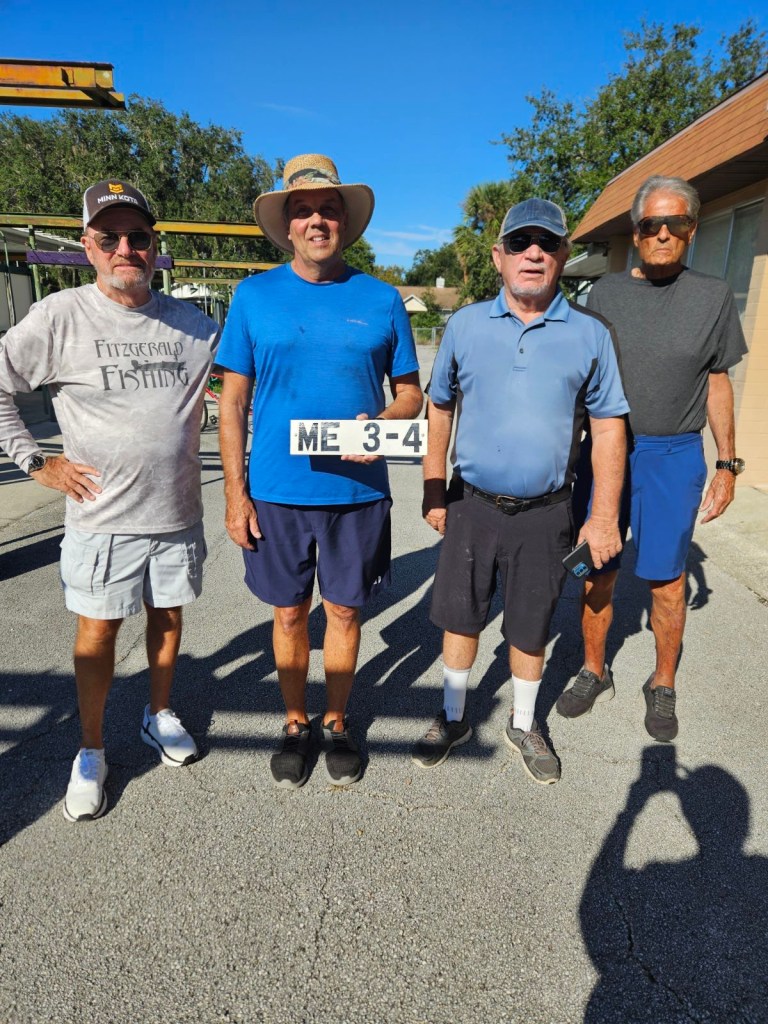 Leesburg hosted the first ND Shuffleboard Tournament of the Season ND01 on Oct 3 and 4, 2024. We had a very light turn out with 11 men’s teams and 5 ladies. Gail Howell was the director with help from Al Dronsfield. The sponsors were Al Dronsfield and Suter Air. The weather was hot but everyone had a great time. The Ladies finished their matches on Thursday and the men on Friday. Congratulations to all the shufflers and thank you to all the volunteers. Please remember if you do not notify the director on Thursday that you cannot return on Friday, you will be disqualified.
