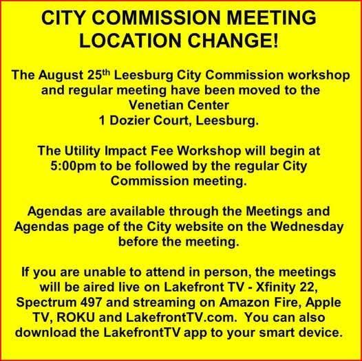 I have confirmed the change of meeting location (below) with the Leesburg City Clerk’s office.