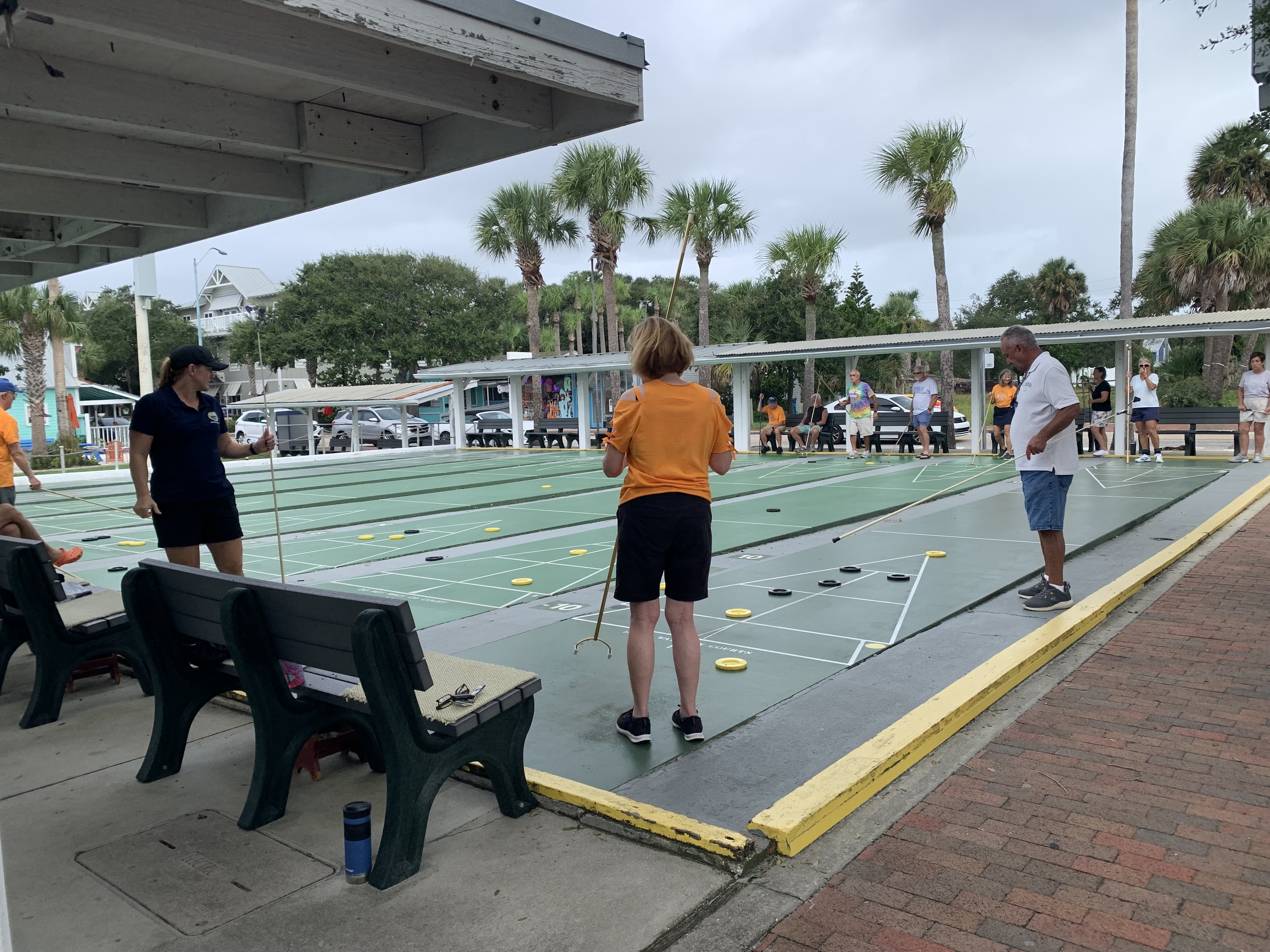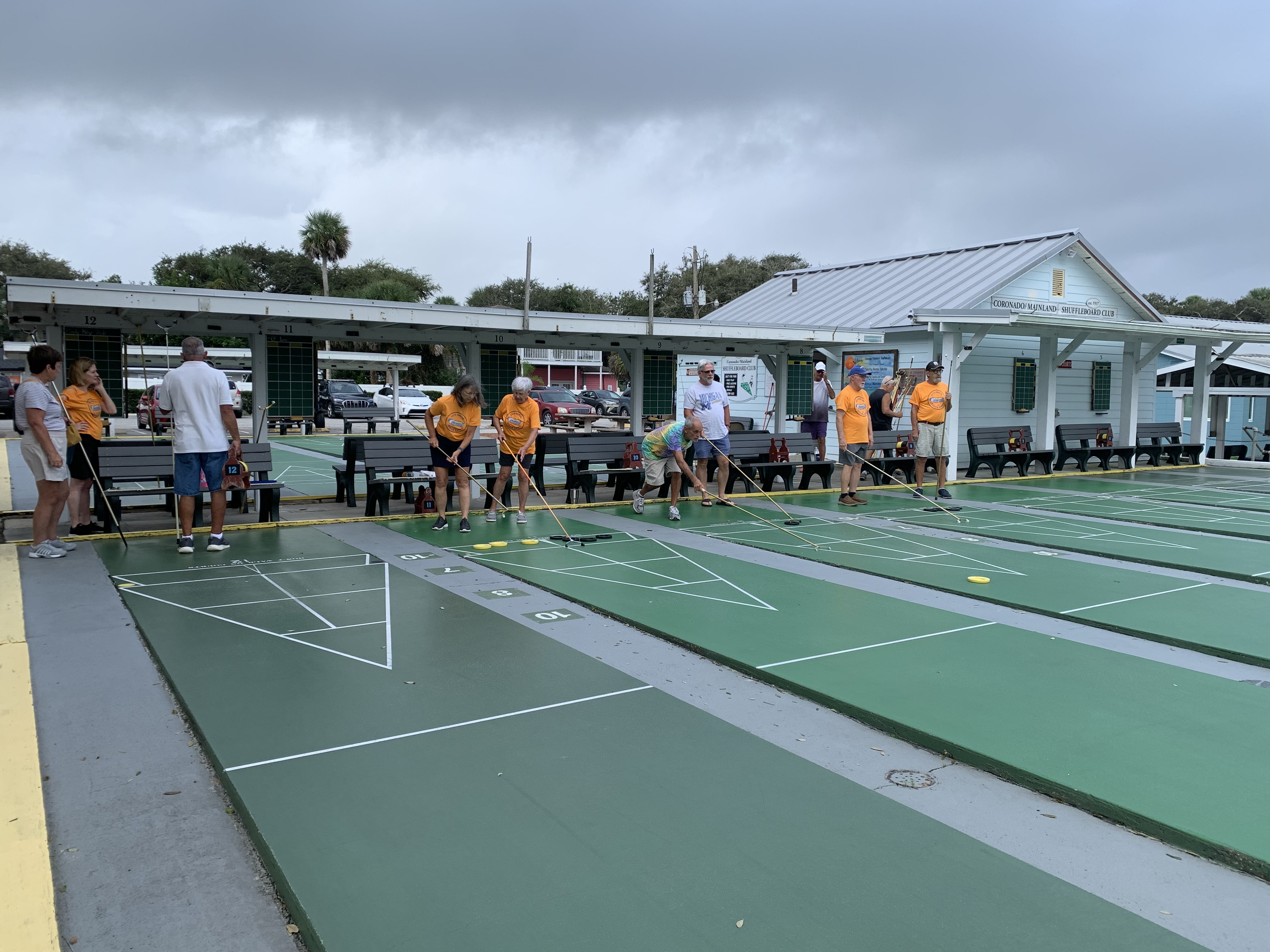 Oct 7th, the Coronado Mainland Shuffleboard Club hosted the NSB Senior Games Shuffleboard Tournament after a rain delay from last week. Thank you Zak Wonson and Mike Beall and others for the help. Please enjoy the gallery.